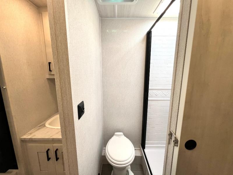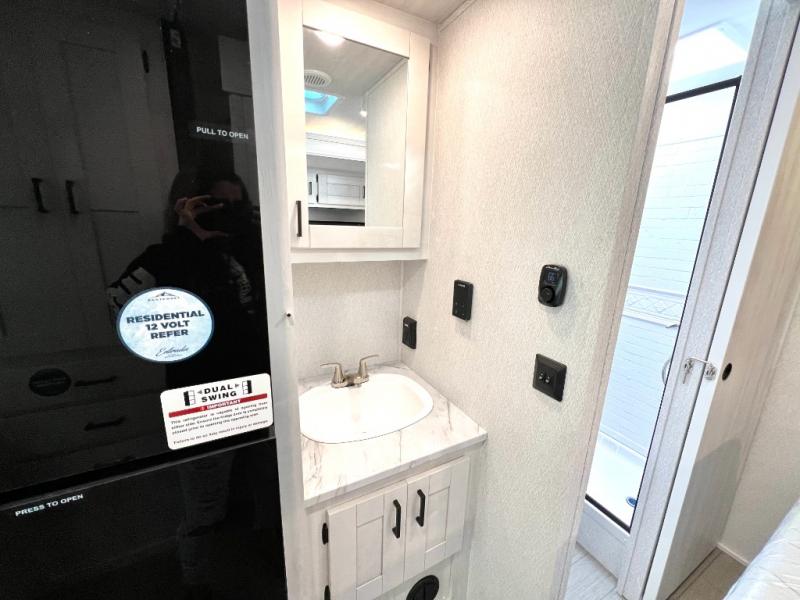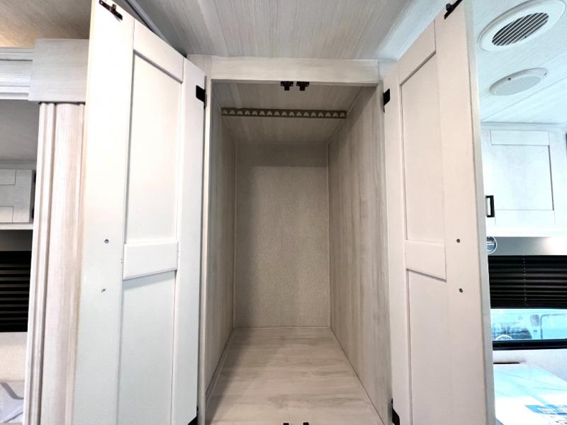 The journey will be oh-so enjoyable when you use this Entrada Class C gas motorhome to explore! You will be able to create meals each day that you are on the road because the kitchen has everything you will need, like a convection microwave, a round sink, a cooktop, a flip-up countertop, and a 10.7-cubic foot refrigerator. There is even a pantry/wardrobe for you to use to store spices, chips, or canned goods. Across from the queen bed slide, you'll find a private bath so you can get cleaned up in the morning, and the vanity with a medicine cabinet is located just outside the bathroom so that someone can brush their teeth while another is showering.