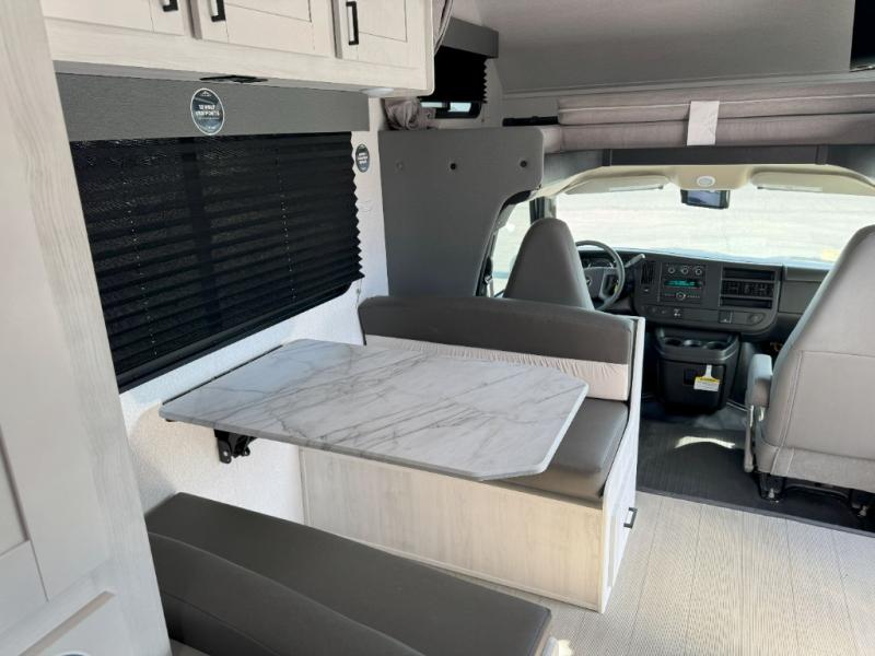 With any Entrada Class C gas motorhome from EAST TO WEST, the construction consists of a completely laminated coach, a one-piece molded fiberglass front cap, 2" thick sidewalls with Azdel composite exterior, a Dicor Diflex ll TPO roof, and integrated entry step. Some of the Entrada value package features include 12V tank heaters to camp during the cooler months, the Winegard Air 360+, plus backup and sideview cameras with monitor for safety on and off the road. The interior offers a 7-foot interior height for a spacious feel, and hardwood shaker style cabinets. Choose an Entrada for its tasteful design, attention to detail, bright interior and/or affordable price-point!