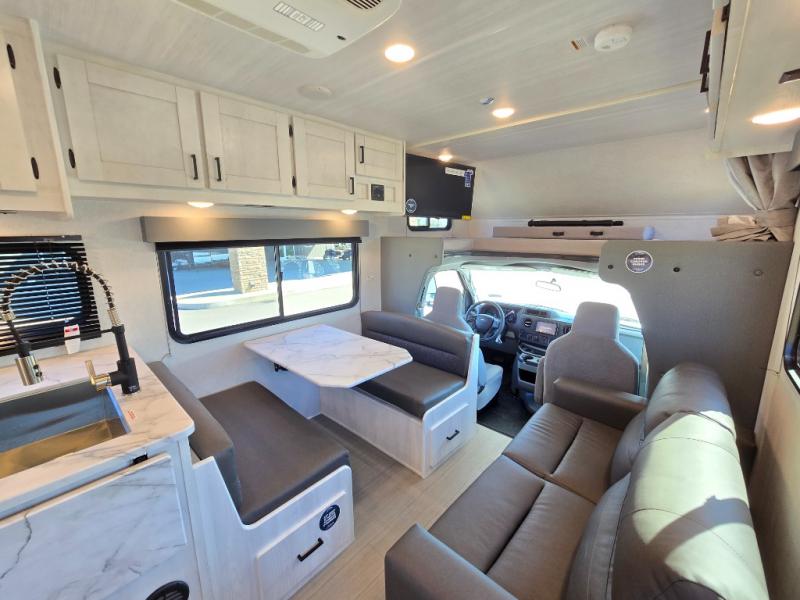 With any Entrada Class C gas motorhome from EAST TO WEST, the construction consists of an automotive painted fiberglass front cap, a Dicor DiFlex ll TPO roof membrane, and Azdel composite sidewalls for added durability. Some of the Entrada value package features include 12V tank heaters to camp during the cooler months, the Winegard Air 360+, plus backup and sideview cameras with a monitor for safety on and off the road. The interior offers a 7-foot interior height for a spacious feel, and 12V USB charge ports will keep your electronics powered up. Choose an Entrada for its tasteful design, attention to detail, bright interior and affordable price-point!