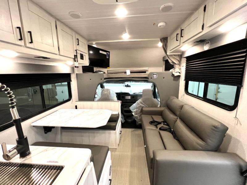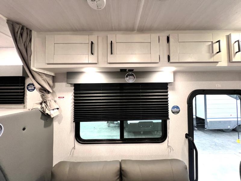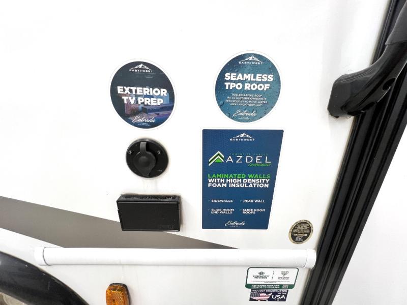 With any Entrada Class C gas motorhome from EAST TO WEST, the construction consists of an automotive painted fiberglass front cap, a Dicor DiFlex ll TPO roof membrane, and Azdel composite sidewalls for added durability. Some of the Entrada value package features include 12V tank heaters to camp during the cooler months, the Winegard Air 360+, plus backup and sideview cameras with a monitor for safety on and off the road. The interior offers a 7-foot interior height for a spacious feel, and 12V USB charge ports will keep your electronics powered up. Choose an Entrada for its tasteful design, attention to detail, bright interior and affordable price-point!
