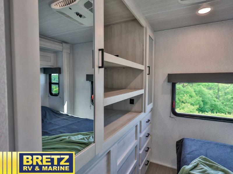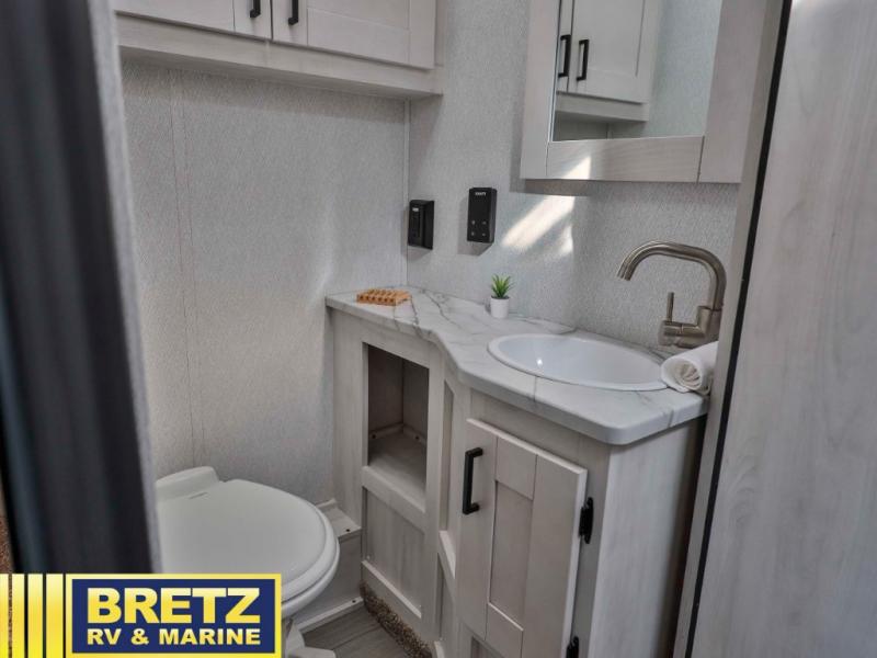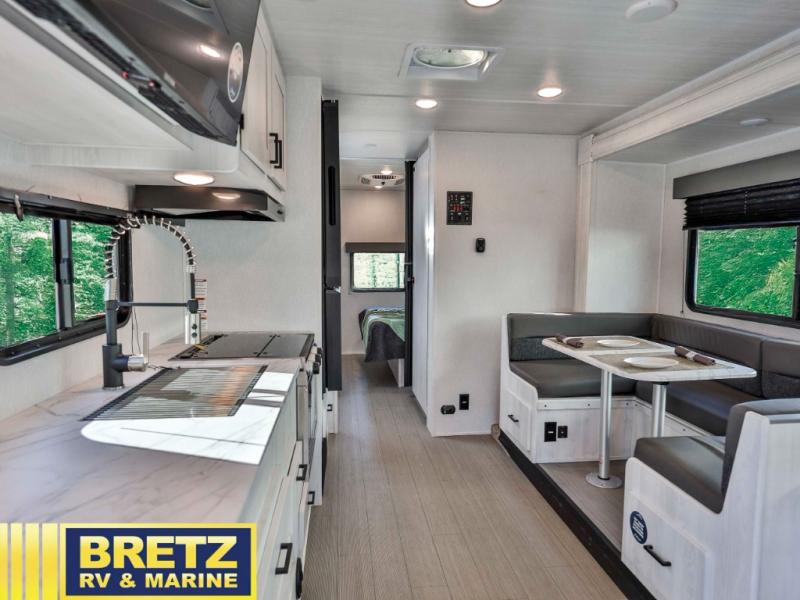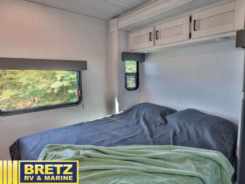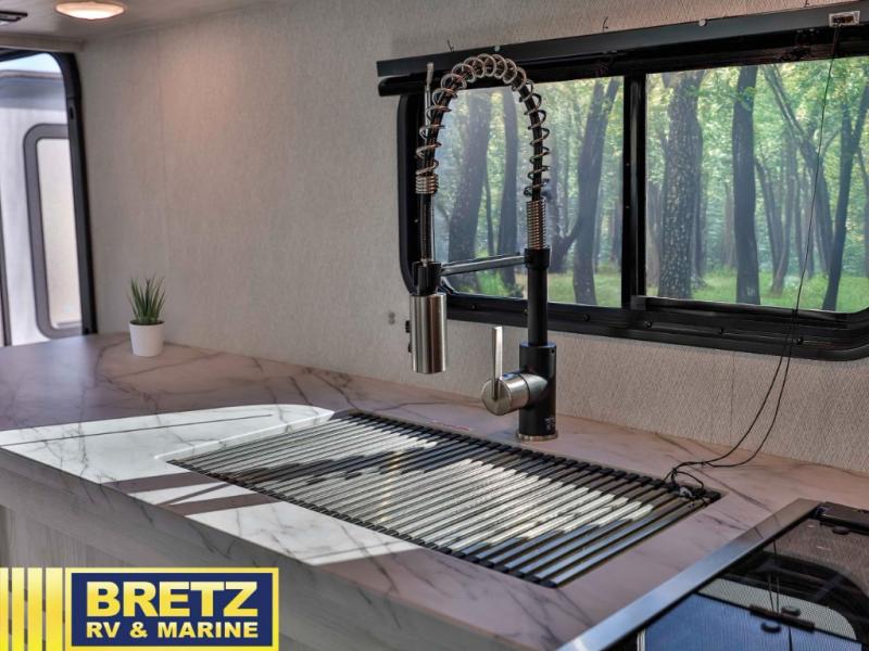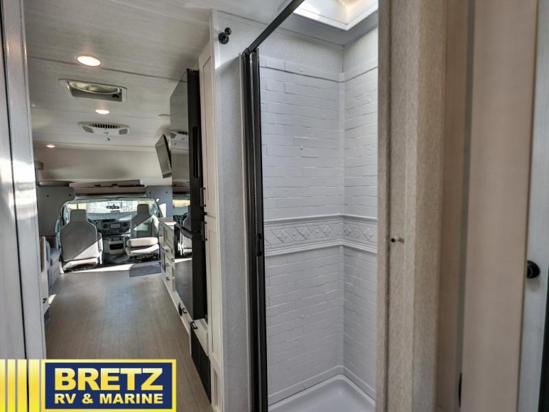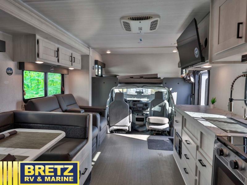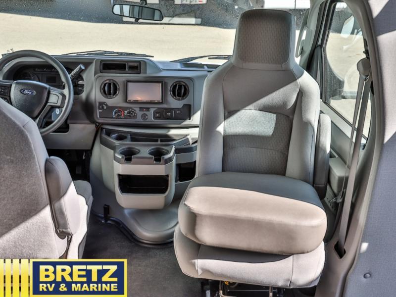With any Entrada Class C gas motorhome from EAST TO WEST, the construction consists of a completely laminated coach, a one-piece molded fiberglass front cap, 2" thick sidewalls with Azdel composite exterior, a Dicor Diflex ll TPO roof, and integrated entry step. Some of the Entrada value package features include 12V tank heaters to camp during the cooler months, the Winegard Air 360+, plus backup and sideview cameras with monitor for safety on and off the road. The interior offers a 7-foot interior height for a spacious feel, and hardwood shaker style cabinets. Choose an Entrada for its tasteful design, attention to detail, bright interior and/or affordable price-point!