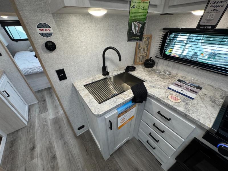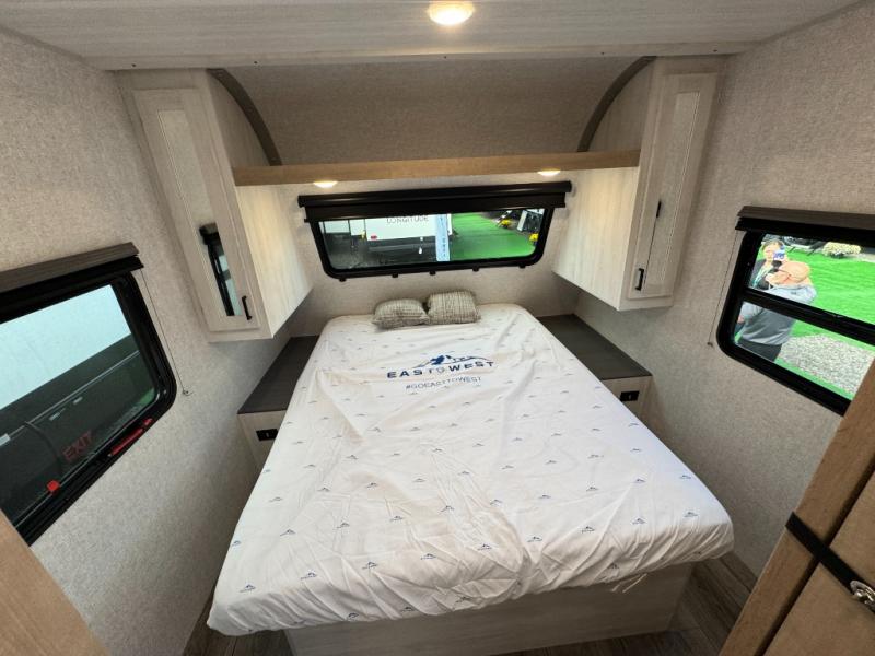 Each one of these EAST TO WEST Longitude travel trailers blends modern amenities with quality construction! They have a 5" vacuum bonded crowned roof, 2" sidewalls with fully laminated side boxes and endwalls, and Azdel both on the inside and outside of the sidewalls to protect you from the elements. The enclosed and heated underbelly extends the life of your unit, and the insulated forced air heated floors will keep your feet nice and warm. A universal docking station, a high output on-demand tankless water heater, and an amplified TV antenna with Wi-Fi prep makes life at the campground easier. You can rinse your feet or bikes off with the outside shower that comes with hot and cold water. The diamond plate front rock guard will hold up through all of your great adventures. Come find the one that suits you best!