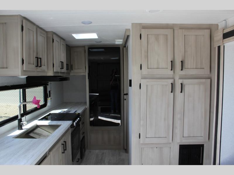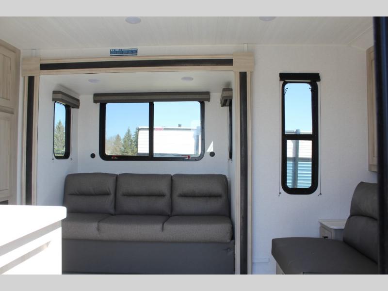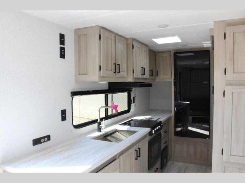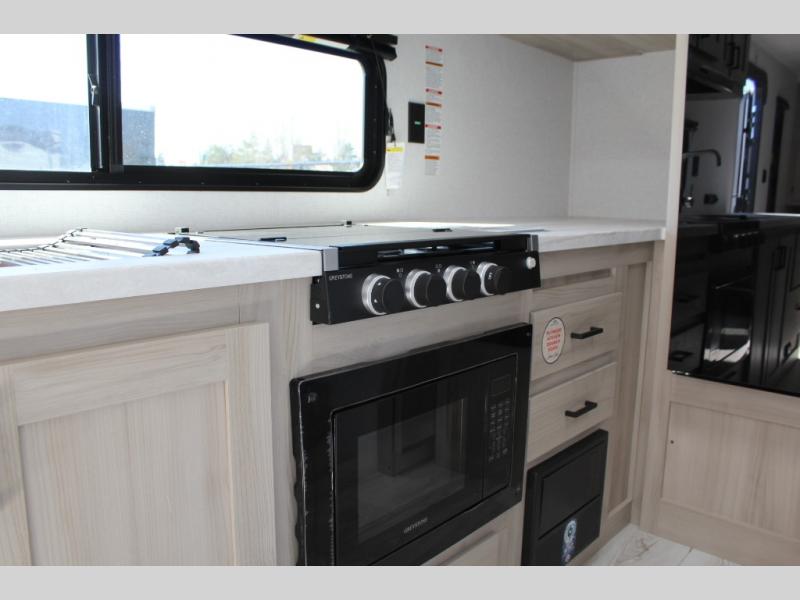 With any Silver Lake travel trailer by EAST TO WEST, you will enjoy comfort features at every turn. There is an outside shower with hot and cold water, a detachable power cord, roof mounted solar prep and backup camera prep, plus a fully finished pass-through storage so you can bring along extra camp gear. Inside, you'll appreciate the 6' 9" ceiling height, along with LED lighting with motion sensor, seamless countertops with no T-mold, plus residential inspired kitchen and living spaces. Each model also includes USB and C-port charging stations, plus they are cable/satellite ready if you choose to add entertainment options.