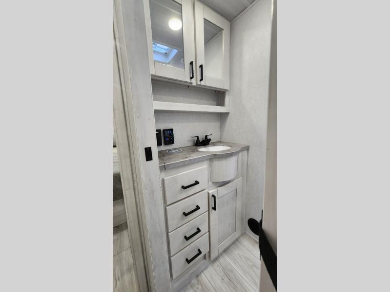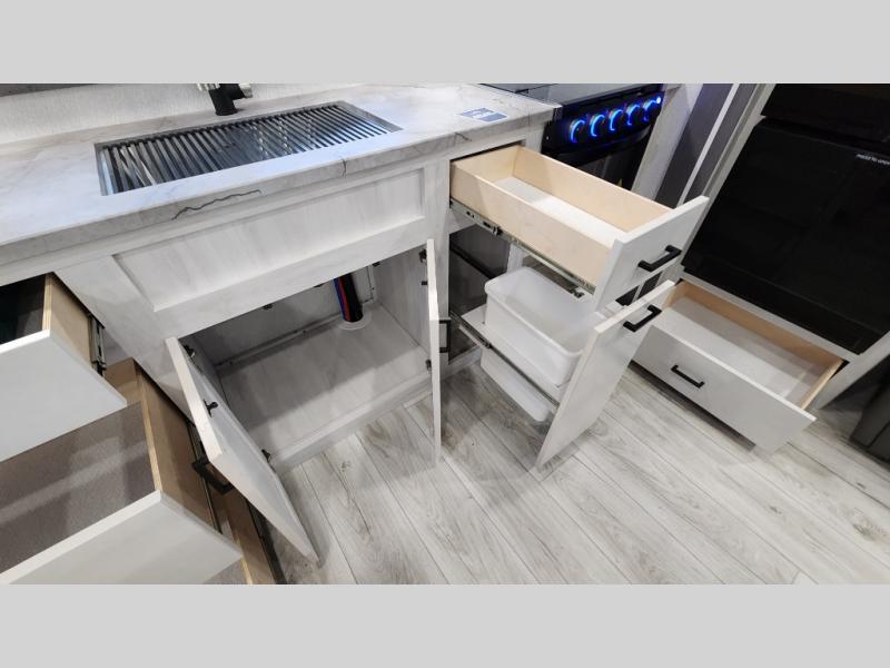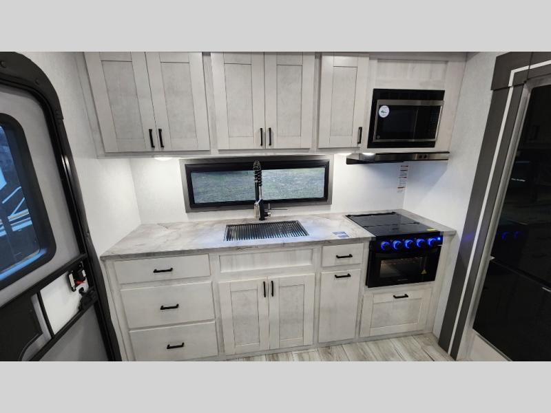 At any point you want to get away to your favorite secluded spot, you can grab your EAST TO WEST Tandara fifth wheel and head out because it has a 4 Seasons Package that will keep you protected during all seasons! There is a MORryde CRE 3000® suspension that will make traveling smooth, and the MORryde StepAbove entry steps provide a stable entrance into the unit. The Tandara has been prepped for a rearview camera, and the interior is very stylish with its artisan maple décor. Some of the luxury features you'll find are the shaker style cabinet doors, deep-seated stainless steel farmhouse sink, plus dimmable LED lights in the living area, kitchen, and bedroom!
