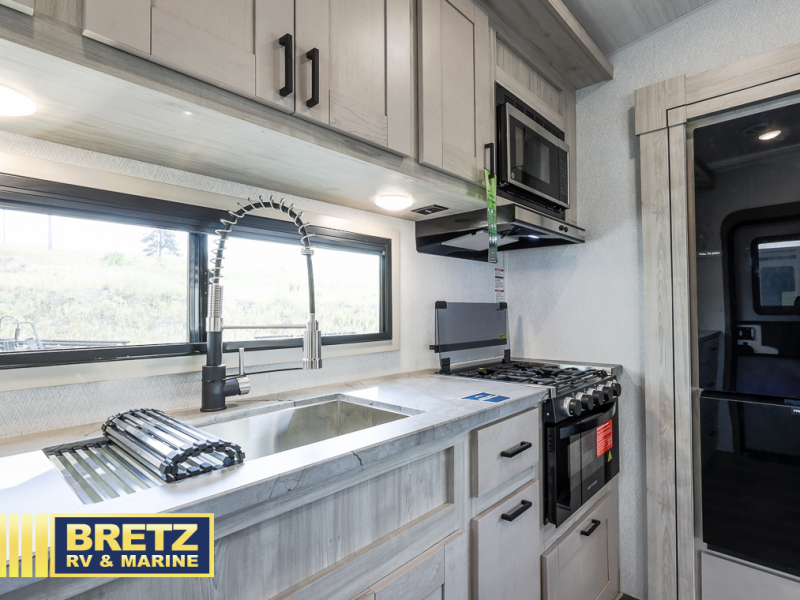 At any point you want to get away to your favorite secluded spot, you can grab your EAST TO WEST Tandara fifth wheel and head out because it has a 4 Seasons Package that will keep you protected during all seasons! There is a MORryde CRE 3000® suspension that will make traveling smooth, and the MORryde StepAbove entry steps provide a stable entrance into the unit. The Tandara has been prepped for a rearview camera, and the interior is very stylish with its artisan maple décor. Some of the luxury features you'll find are the shaker style cabinet doors, deep-seated stainless steel farmhouse sink, plus dimmable LED lights in the living area, kitchen, and bedroom!