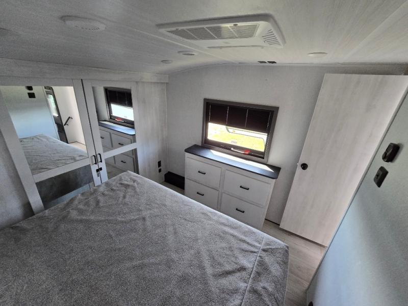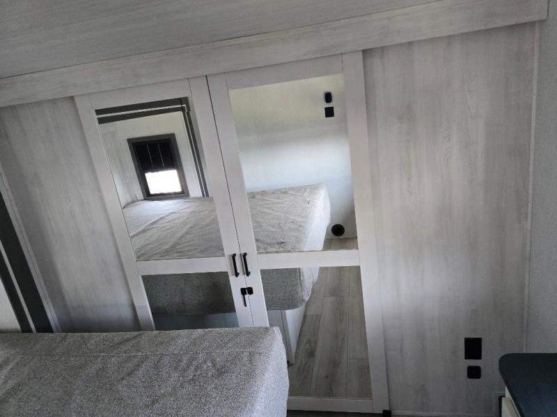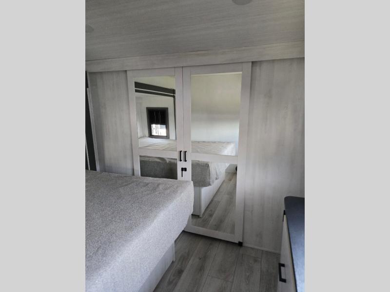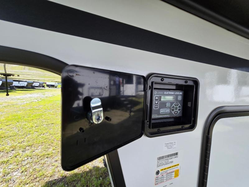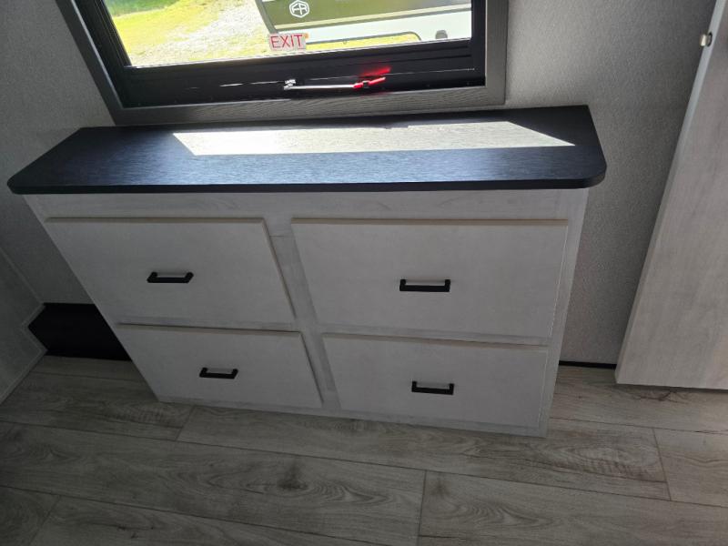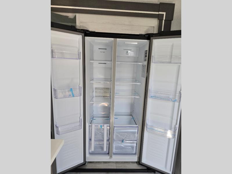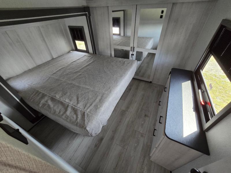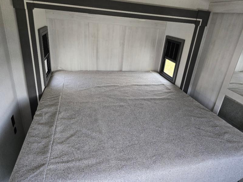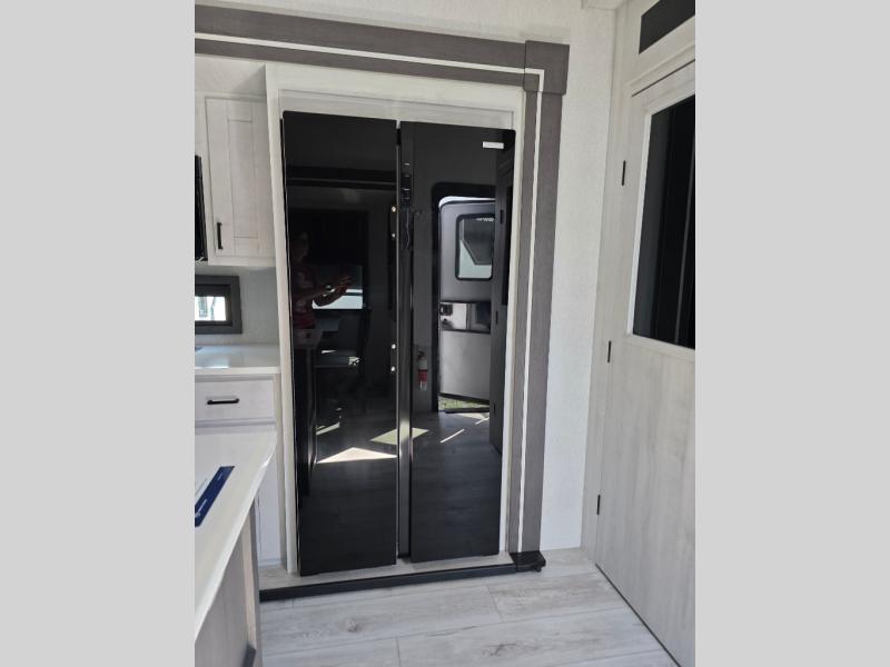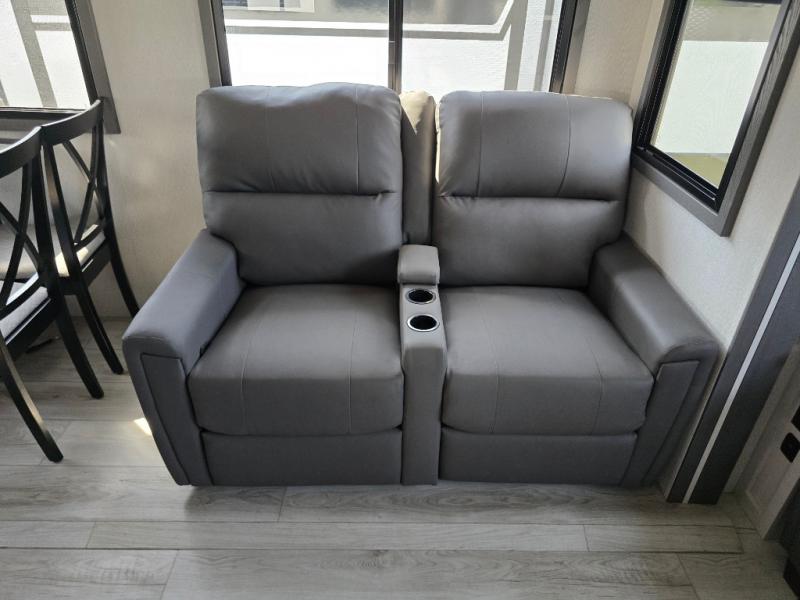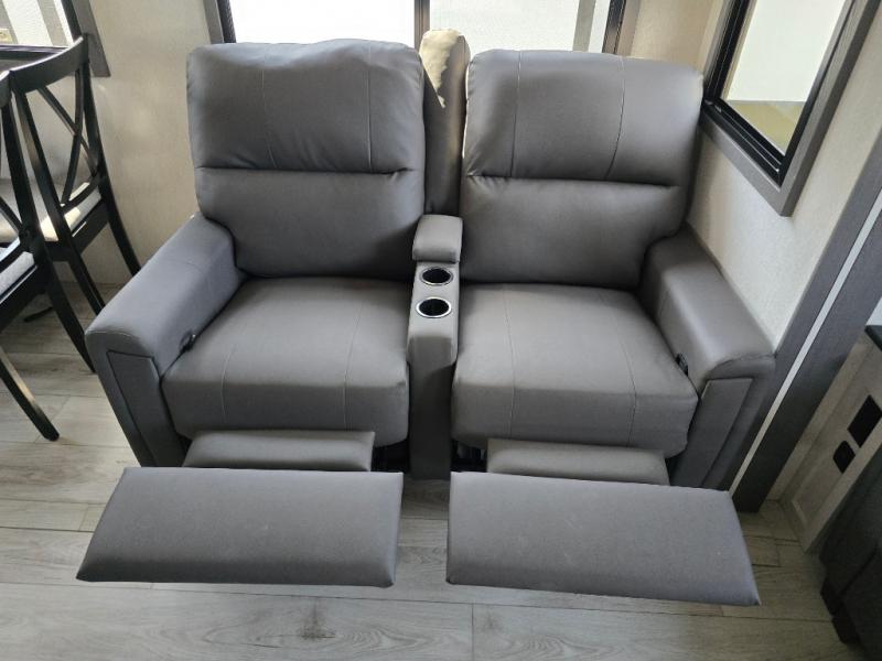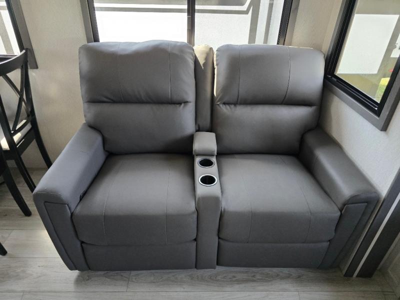 Take this Tandara fifth wheel out to the campsite and experience luxury while you camp! You will have a front private bedroom that is quite impressive with its full-width wardrobe, king bed slide with bedside shelves, under-bed storage, and a dresser with a TV prep area. The kitchen island is easy to gather around while you're cooking dinner or enjoying a late-night snack, and the hide-a-bed sofa will be comfortable for lounging or sleeping. As you spend time outside under the two electric awnings, you can grab some extra charcoal or camping chairs from the oversized pass-through storage.