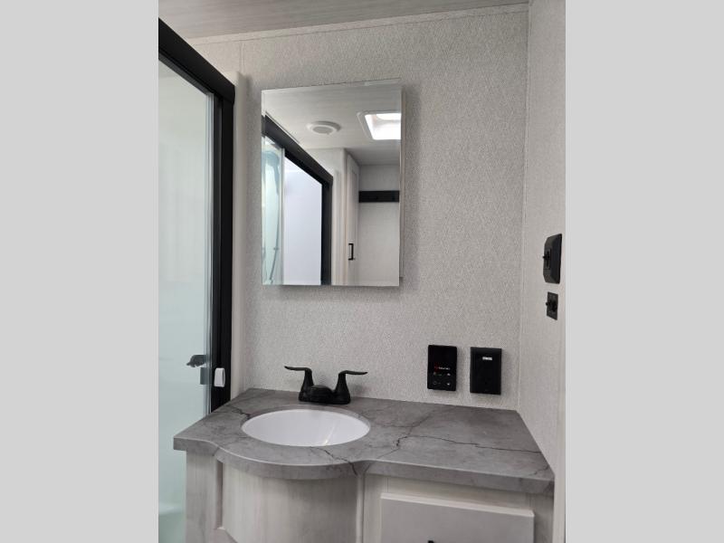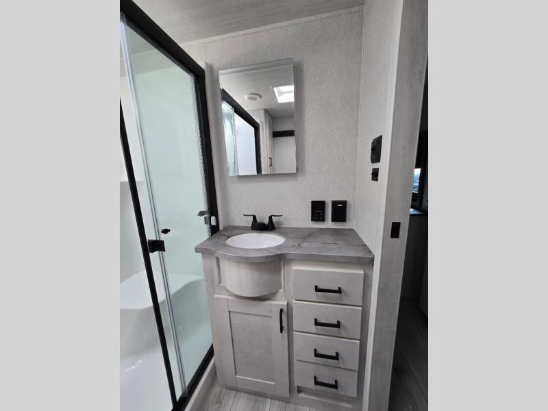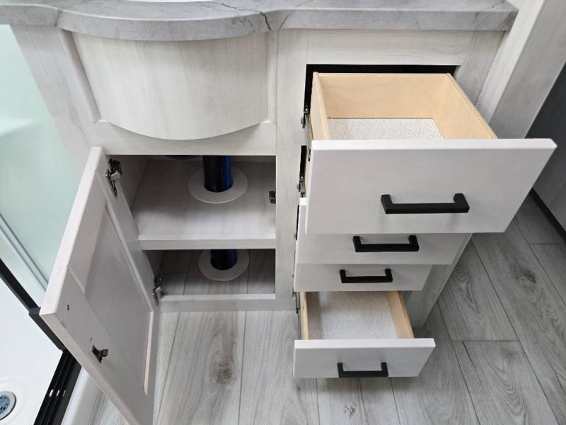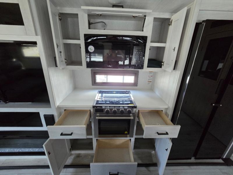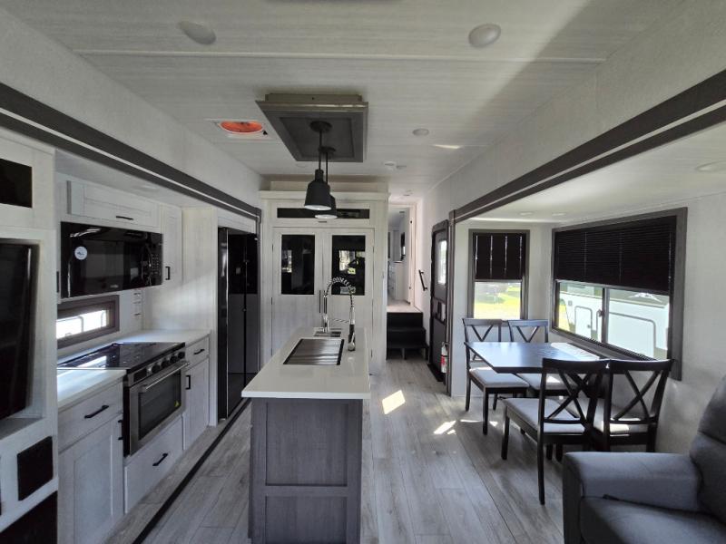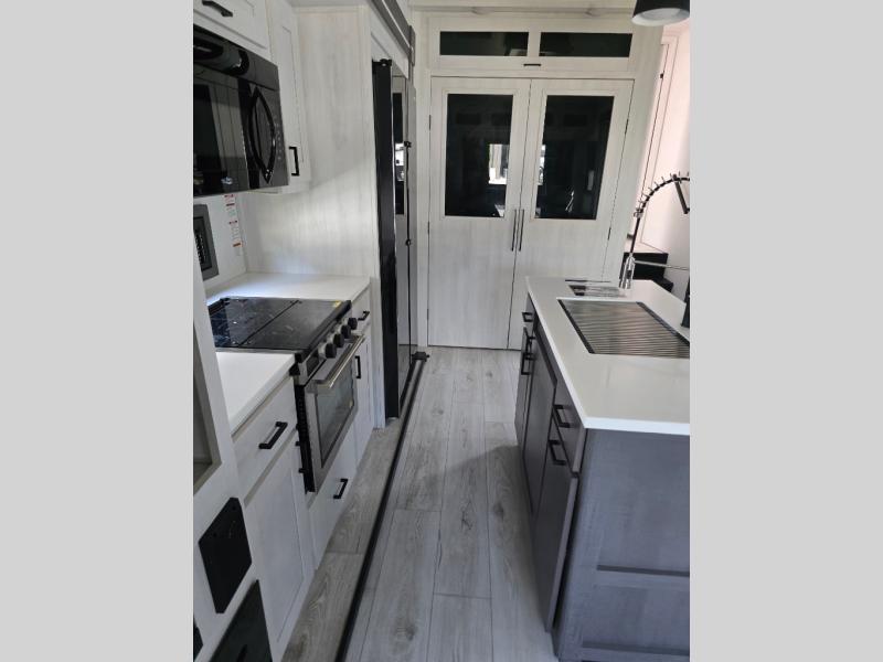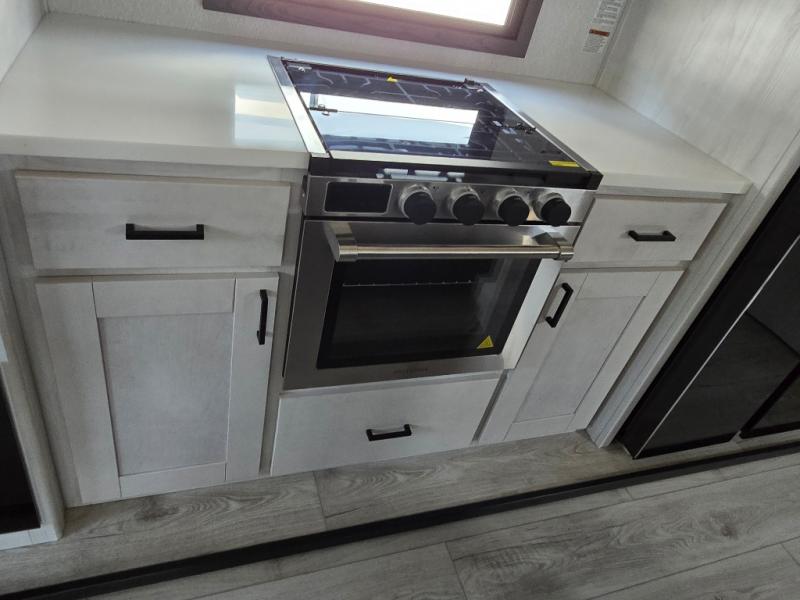 At any point you want to get away to your favorite secluded spot, you can grab your EAST TO WEST Tandara fifth wheel and head out because it has a 4 Seasons Package that will keep you protected during all seasons! There is a MORryde CRE 3000® suspension that will make traveling smooth, and the MORryde StepAbove entry steps provide a stable entrance into the unit. The Tandara has been prepped for a rearview camera, and the interior is very stylish with its artisan maple décor. Some of the luxury features you'll find are the shaker style cabinet doors, deep-seated stainless steel farmhouse sink, plus dimmable LED lights in the living area, kitchen, and bedroom!