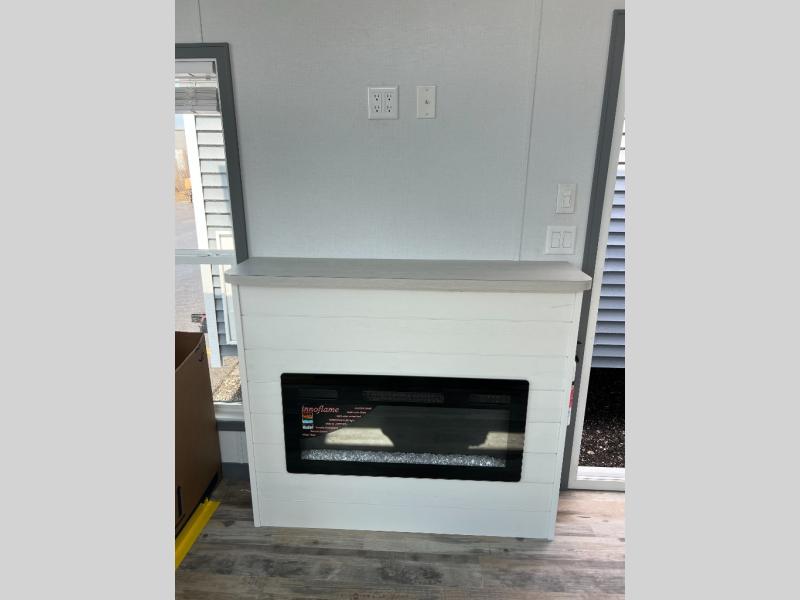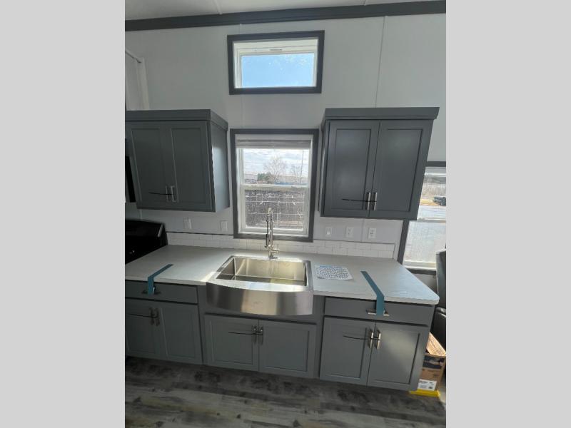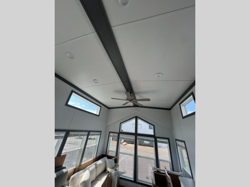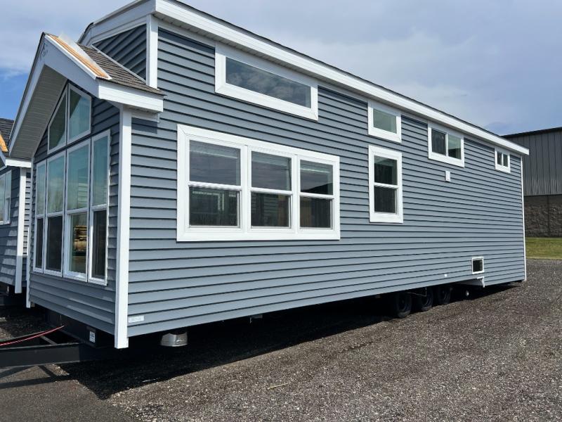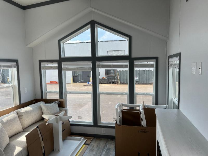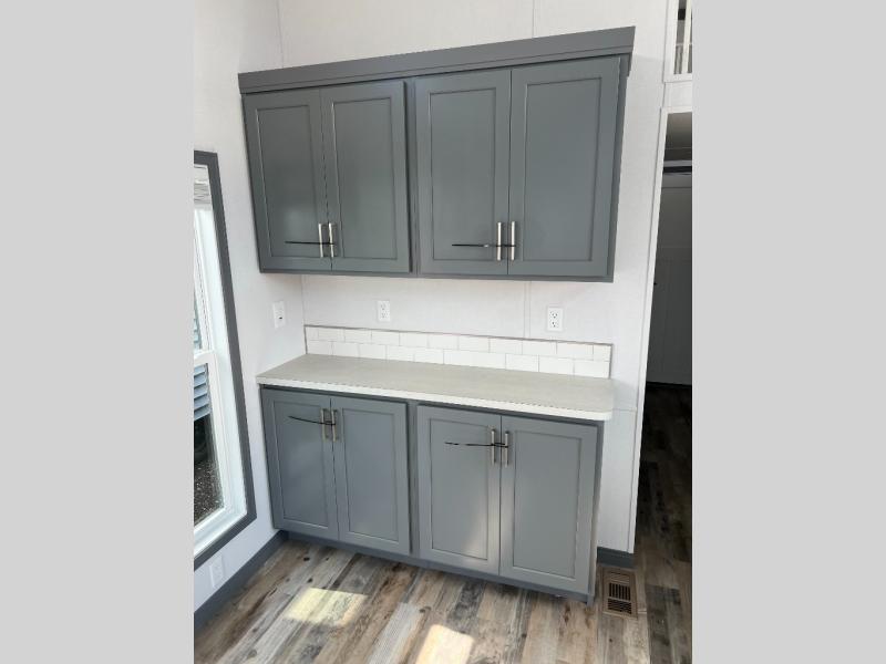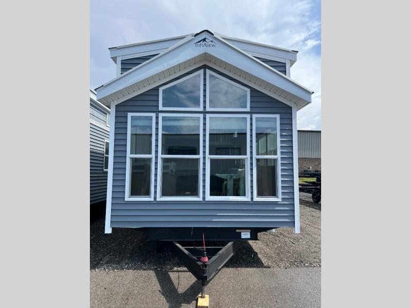 Elevation's park models are the home away from home you need! Built with premium vinyl siding and a standing seam metal roof, these models have a maximum square footage of 400 square feet for efficient space. A 6' vinyl patio door with built-in blinds and shed dormers provide visual interest as well as an open airy feeling. You will love the real hardwood trim package, solid surface countertops throughout, the Kohler industrial kitchen faucet, and high-end staggered cabinetry. There are also LG Smart TVs in the living room and bedroom, full-height tile or stone backsplash, a Serta mattress, and many more interior comforts. Each unit can be customized with a wide variety of colors, window designs, bathroom layouts, and other personalized modifications to the floorplan.