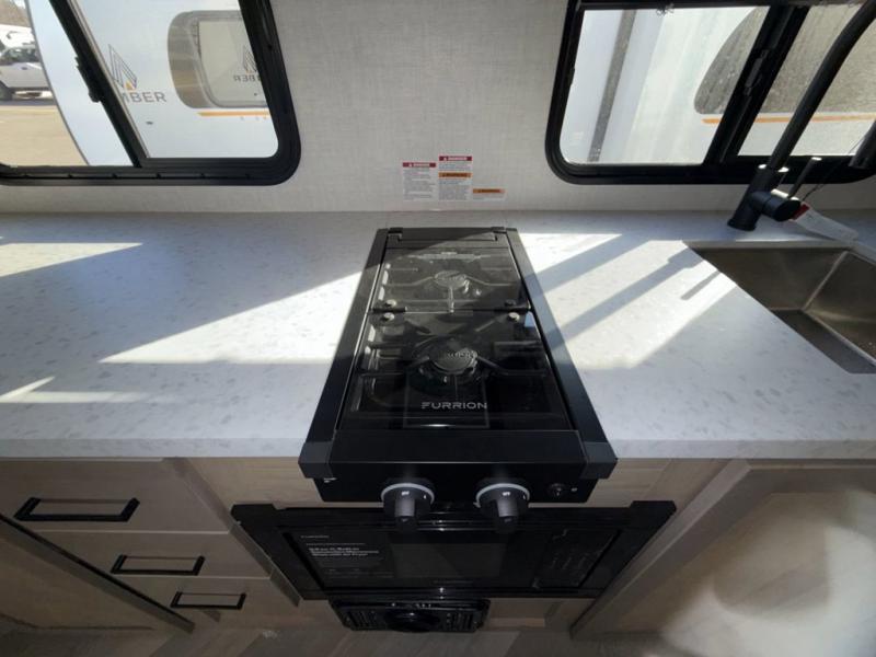 With any E-Series travel trailer by Ember RV you will enjoy a lightweight RV with all the "Essentials" needed for memorable trips in the great outdoors! Each model is constructed with durable laminated Azdel Onboard composite walls, a full walkable roof with a one-piece Tufflex PVC roofing material, and a gel-coated fiberglass exterior. The Dexter axles with E-Z lube hubs and forward self-adjusting electric brakes plus Goodyear Endurance tires will provide a smooth tow from home to campground. You will appreciate the Congoleum DiamondFlor "carpetless" interior that is easy to clean, and the hardwood framed cabinet doors will create a more residential feel. Each model includes a tankless on-demand water heater for endless hot showers and an 18,000 BTU Max Cool "Whisper Quiet" A/C, which is the largest single A/C in its class! If you're looking for off-grid capabilities, you might want to choose the optional Off-Grid Solar Package with 400 total watts of solar panels, a 2,000W Pure Sine wave inverter, and a Victron MPPT solar controller!