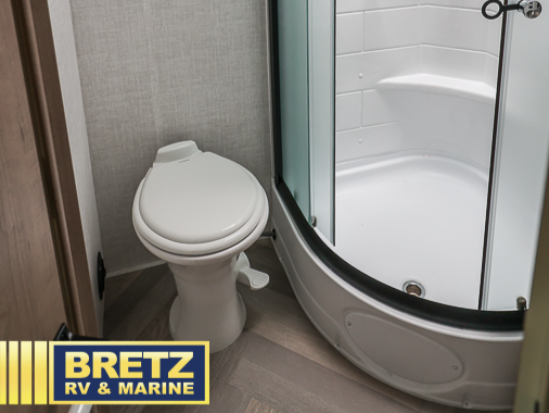 Time at the campground in this travel trailer will be time well spent. Once you arrive at your destination, you can put out the 14' electric awning, unpack the pass-through storage, then head inside for lunch. There is an air fryer convection microwave plus a dual burner cooktop to make meals each day, and the 10 cu. ft. 12V refrigerator will keep your food fresh. A legless dinette slide provides a place to dine together and even let a guest sleep over. If you're not needing the extra sleeping space, just choose the optional theater seating! You'll find the front queen bed will give you a great night's rest, and there is a full rear bath on board that will allow you to freshen up each morning.