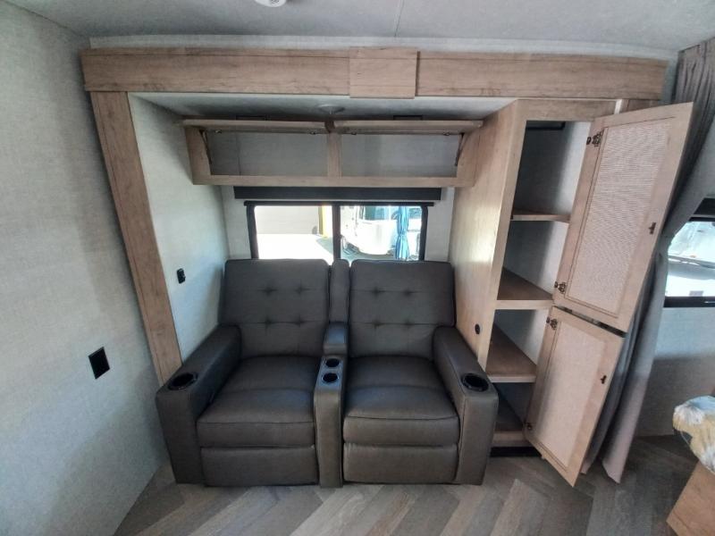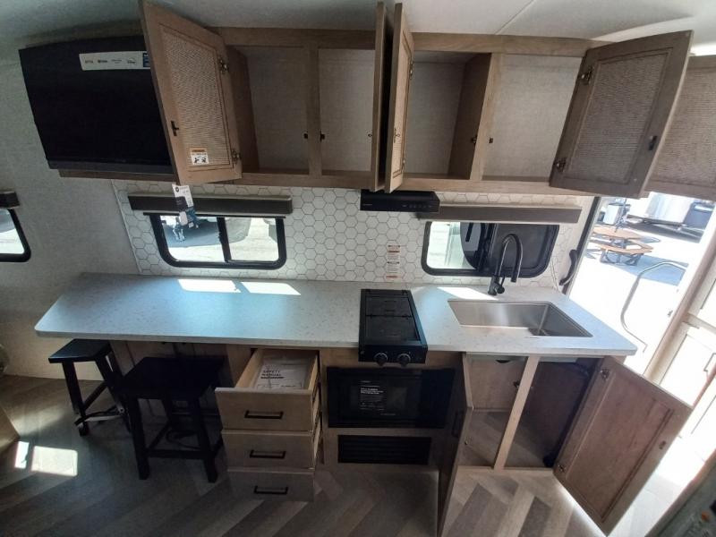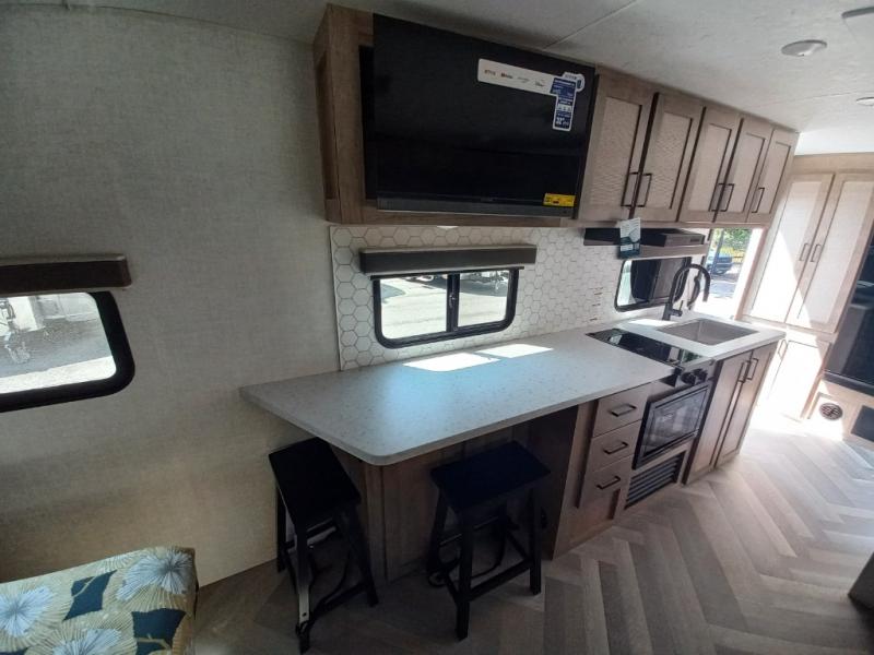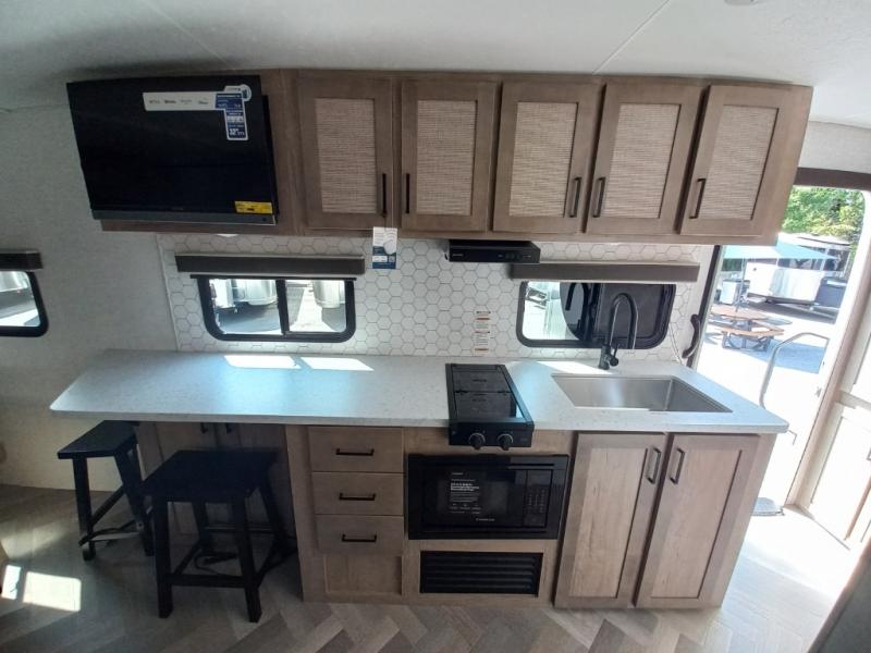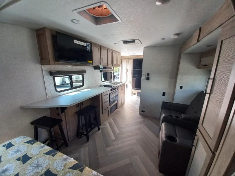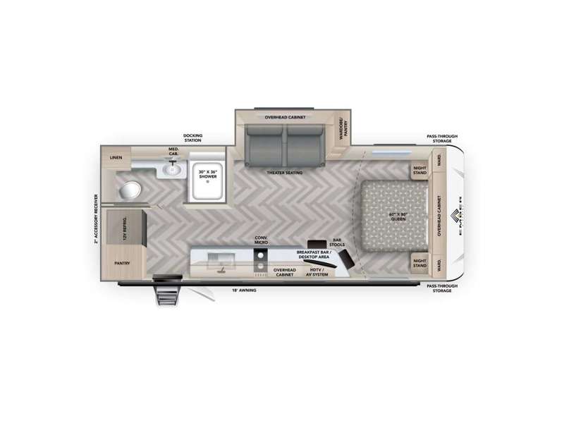 Brand new E-Series 21FBE is Ember RV's LIGHTEST and SHORTEST E-Series model, featuring best in class 15” Goodyear Endurance tires, 18k BTU air conditioning, 82” ceiling heights, and residential Queen-sized mattresses. And of course, backed by Ember’s easy as 1-2-3 warranty.