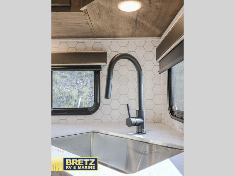 With any E-Series travel trailer by Ember RV you will enjoy a lightweight RV with all the "Essentials" needed for memorable trips in the great outdoors! Each model is constructed with durable laminated Azdel Onboard composite walls, a full walkable roof with a one-piece Tufflex PVC roofing material, and a gel-coated fiberglass exterior. The Dexter axles with E-Z lube hubs and forward self-adjusting electric brakes plus Goodyear Endurance tires will provide a smooth tow from home to campground. You will appreciate the Congoleum DiamondFlor "carpetless" interior that is easy to clean, and the hardwood framed cabinet doors will create a more residential feel. Each model includes a tankless on-demand water heater for endless hot showers and an 18,000 BTU Max Cool "Whisper Quiet" A/C, which is the largest single A/C in its class! An EmberLink Smart RV system will let you easily control features such as lights and slides and you can wash away those rainy day blues by watching the HDTV with a built-in Bluetooth AV system. If you're looking for off-grid capabilities, you might want to choose the optional Off-Grid Solar Package with 400 total watts of solar panels, a 2,000W Pure Sine wave inverter, and a Victron MPPT solar controller!