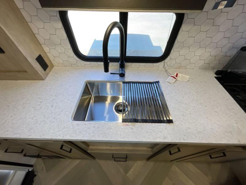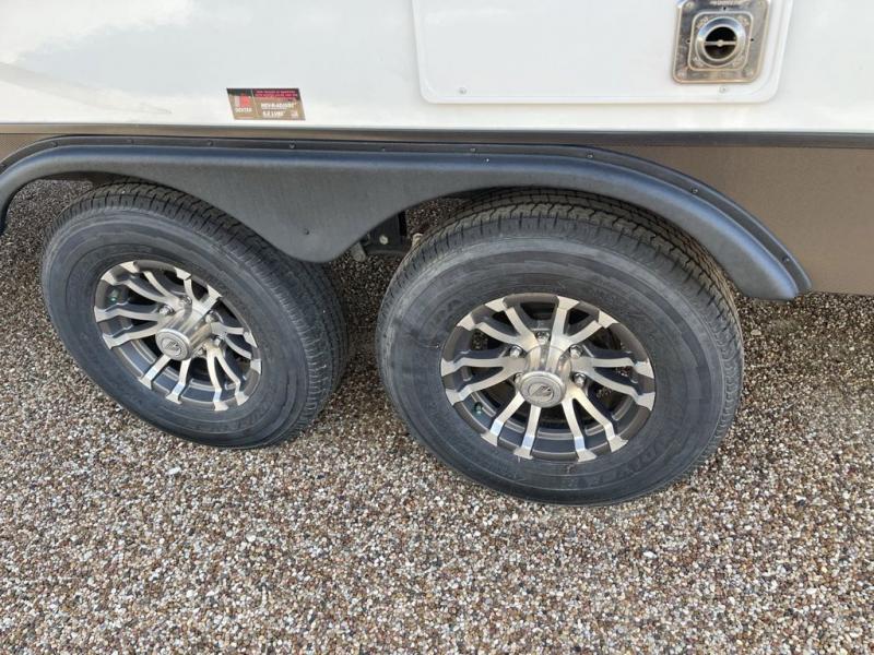 With any E-Series travel trailer by Ember RV you will enjoy a lightweight RV with all the "Essentials" needed for memorable trips in the great outdoors! Each model is constructed with durable laminated Azdel Onboard composite walls, a full walkable roof with a one-piece Tufflex PVC roofing material, and a gel-coated fiberglass exterior. The Dexter axles with E-Z lube hubs and forward self-adjusting electric brakes plus Goodyear Endurance tires will provide a smooth tow from home to campground. You will appreciate the Congoleum DiamondFlor "carpetless" interior that is easy to clean, and the hardwood framed cabinet doors will create a more residential feel. Each model includes a tankless on-demand water heater for endless hot showers and an 18,000 BTU Max Cool "Whisper Quiet" A/C, which is the largest single A/C in its class! An EmberLink Smart RV system will let you easily control features such as lights and slides and you can wash away those rainy day blues by watching the HDTV with a built-in Bluetooth AV system. If you're looking for off-grid capabilities, you might want to choose the optional Off-Grid Solar Package with 400 total watts of solar panels, a 2,000W Pure Sine wave inverter, and a Victron MPPT solar controller!