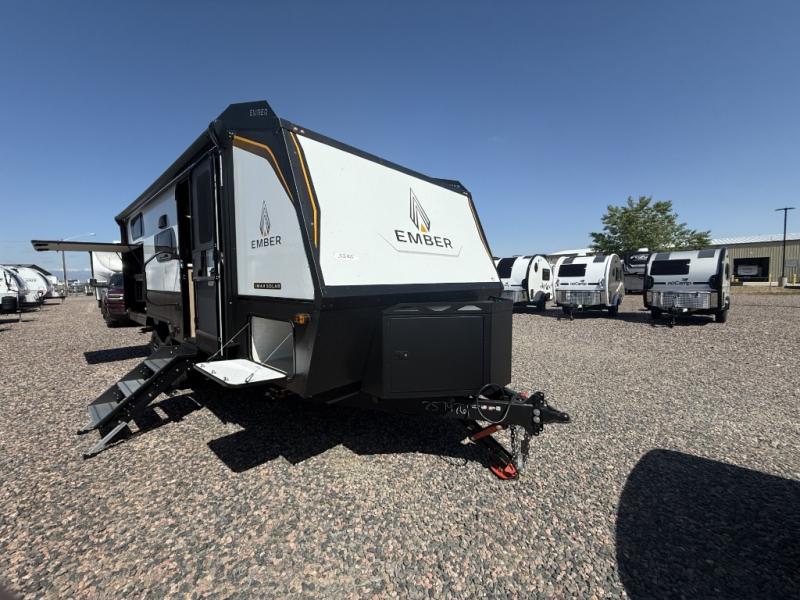 Each one of these Ember RV Overland Series travel trailers and toy hauler were built to meet the needs of today's most discerning RVers with layouts to fit couples and families! The CURT independent suspension comes with heavy-duty coil springs with dual shock absorbers on each wheel, and the 5-sided aluminum frame construction is sure to hold up through whatever adventure you throw its way. Laminated Azdel Onboard composite walls and rooftop prevent rotting or molding of the unit. Their chic interior design comes with structural composite flooring that is durable and easy to clean, dual pane caravan windows with integrated thermal shades/screens for added privacy, and an EmberLink smart RV control system to use at the touch of a finger. The Off-Grid Solar package lets you go further into the woods and the Safety First package helps you arrive safely to each destination. You will also appreciate the Luxury Package with an air fryer convection microwave, the Overland Package with an XL fresh water tank, and the optional Max Solar Package for maximum off-grid capabilities!