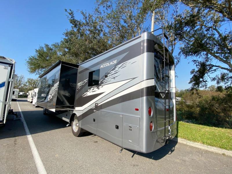 Strength and luxury come together perfectly to bring you the Accolade Super C diesel motorhome by Entegra Coach. The E-Z Drive Premier includes a computer-balanced driveshaft, a heavy-duty rear stabilizer bar, SACHS shocks, and more to provide a smooth drive. You'll be able to feel the power behind the Cummins ISB 6.7L diesel engine with 360 HP and 800 ft. lb. torque, plus each model sits on the advanced Freightliner S2RV chassis. The cockpit is every captain's dream with its Sony infotainment center, backup and side-view cameras, 6-way power driver and passenger seats, and much more. Step inside to find vinyl plank flooring, LED-lit solid-surface kitchen countertops, and high-intensity recessed LED ceiling lights to name a few comforts. The Accolade also includes many convenient amenities to make each trip enjoyable, like the water filtration system, the Winegard in-motion satellite dish, and the automatic hydraulic leveling jacks!
