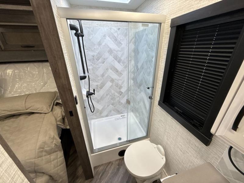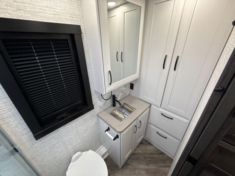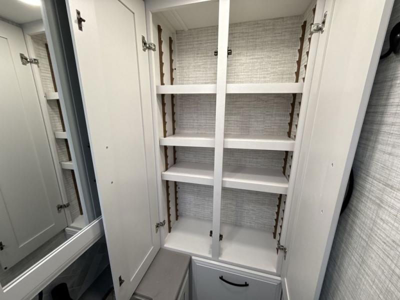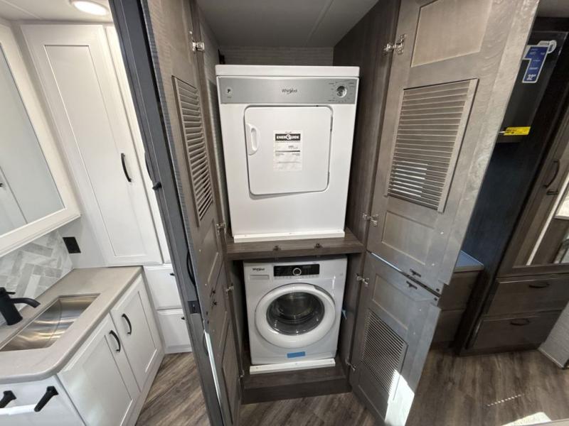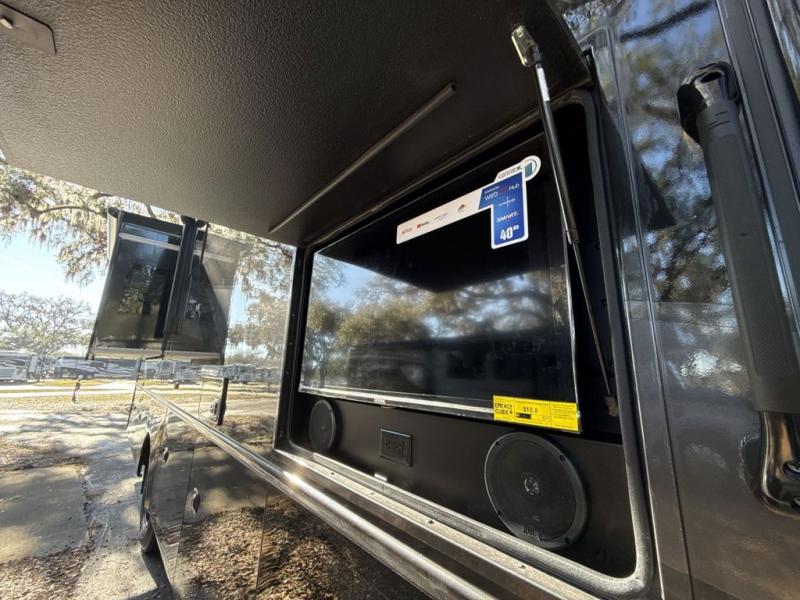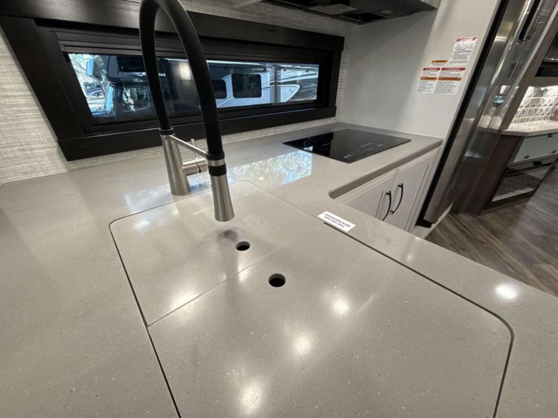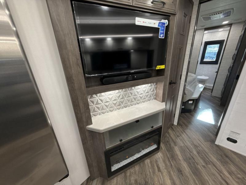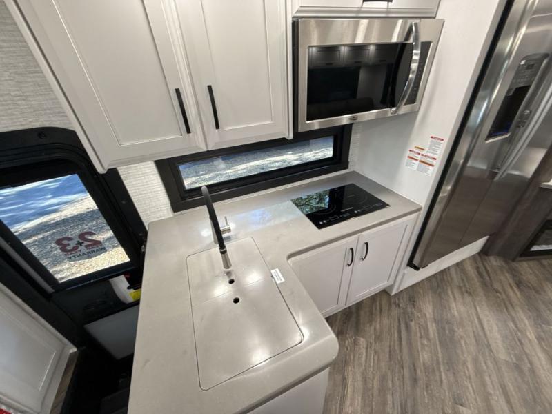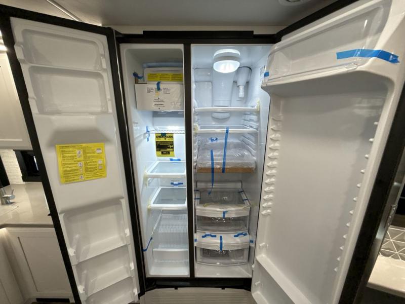 Get ready for fun adventures in this double slide out coach! Once you arrive at your destination, set up the 17' power awning with LED lights and watch the big game on the exterior LED Smart TV. You'll find plenty of seating spaces in the main living area on the 93" reclining sofa or at the booth dinette, plus there is a fireplace here and an LED HD Smart TV. The kitchen is any chef's dream with its residential refrigerator, two burner induction cooktop, and residential-size convection microwave. This model also includes a bath and a half that will come in handy when traveling with friends and family, and don't overlook the master bedroom with a power head lift king bed slide, large wardrobes, and an LED Smart TV!