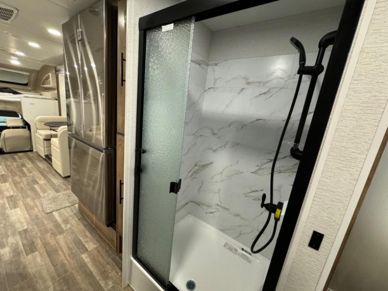 You'll have grand adventures in the Accolade XT Super C diesel motorhome. The Ford 4X4 chassis can tackle difficult roads, but with the E-Z Drive Premier, you'll enjoy a combination of features that make your ride more comfortable, including a computer-balanced driveshaft, front and rear heavy-duty stabilizer bars, and Koni® shocks. The convenience continues into the cockpit, where you'll find an 8-way power driver seat and the Ford® SYNC® 4 infotainment center to cover all your entertainment needs. The Firefly Multiplex command center lets you operate multiple systems, even from a mobile device. Inside, you'll enjoy integrated day/night cassette shades, LED-lit solid surface kitchen countertops, large bedroom wardrobes, and a decorative shower surround with a glass door to name a few comforts!