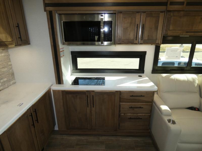 You'll have grand adventures in the Accolade XT Super C diesel motorhome. The Ford 4X4 chassis can tackle difficult roads, but with the E-Z Drive Premier, you'll enjoy a combination of features that make your ride more comfortable, including a computer-balanced driveshaft, front and rear heavy-duty stabilizer bars, and Koni® shocks. The convenience continues into the cockpit, where you'll find an 8-way power driver seat and the Ford® SYNC® 4 infotainment center to cover all your entertainment needs. The Firefly Multiplex command center lets you operate multiple systems, even from a mobile device. Inside, you'll enjoy integrated day/night cassette shades, LED-lit solid surface kitchen countertops, large bedroom wardrobes, and a decorative shower surround with a glass door to name a few comforts!