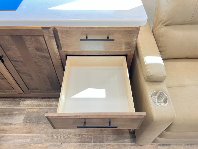 You'll have grand adventures in the Accolade XT Super C diesel motorhome. The Ford 4X4 chassis can tackle difficult roads, but with the E-Z Drive Premier, you'll enjoy a combination of features that make your ride more comfortable, including a computer-balanced driveshaft, front and rear heavy-duty stabilizer bars, and Koni® shocks. The convenience continues into the cockpit, where you'll find an 8-way power driver seat and the Ford® SYNC® 4 infotainment center to cover all your entertainment needs. The Firefly Multiplex command center lets you operate multiple systems, even from a mobile device. Inside, you'll enjoy integrated day/night cassette shades, LED-lit solid surface kitchen countertops, large bedroom wardrobes, and a decorative shower surround with a glass door to name a few comforts!