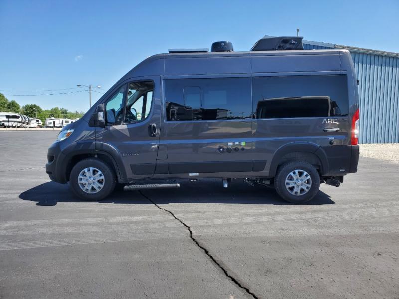 The ARC Class B gas motorhome by Entegra Coach lets you explore the great outdoors in comfort and style! This agile camper van sits on a durable RAM ProMaster 1500 cargo van chassis with a 3.6L V6 24V VVT 276 engine, and features an exterior length under 18 feet for easy maneuvering in the city or on open roads. There are custom-molded ABS interior wall panels for added durability, and the LED-lit running boards are sure to be eye-catching. The exterior also includes automatic high-beam headlights, a chrome grille package, and a Thule patio awning with an LED light strip to make your outside time enjoyable. You will appreciate having an Aqua-Hot GEN-1 hydronic water and heating system onboard, along with two 12V AGM house batteries, and an Onan 2,800W generator to keep your adventures going. The ARC's interior will have you feeling at home with residential vinyl flooring, high-intensity LED ceiling lights, and decorative window valances with day/night roller shades. There are also convenient cockpit features that include a 10.1" Uconnect 5 NAV infotainment center, a ParkView rear backup camera with dynamic gridlines, a push-button start, and more!