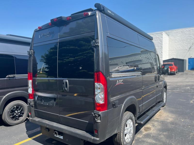 The ARC Class B gas motorhome by Entegra Coach lets you explore the great outdoors in comfort and style! This agile camper van sits on a durable RAM ProMaster 1500 cargo van chassis with a 3.6L V6 24V VVT 276 engine, and features an exterior length under 18 feet for easy maneuvering in the city or on open roads. There are custom-molded ABS interior wall panels for added durability, and the LED-lit running boards are sure to be eye-catching. The exterior also includes automatic high-beam headlights, a chrome grille package, and a Thule patio awning with an LED light strip to make your outside time enjoyable. You will appreciate having an Aqua-Hot GEN-1 hydronic water and heating system onboard, along with two 12V AGM house batteries, and an Onan 2,800W generator to keep your adventures going. The ARC's interior will have you feeling at home with residential vinyl flooring, high-intensity LED ceiling lights, and decorative window valances with day/night roller shades. There are also convenient cockpit features that include a 10.1" Uconnect 5 NAV infotainment center, a ParkView rear backup camera with dynamic gridlines, a push-button start, and more!