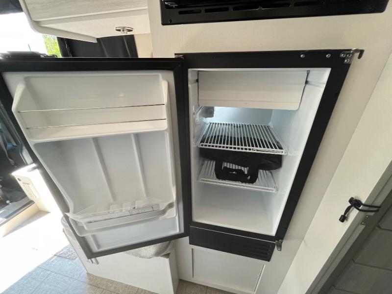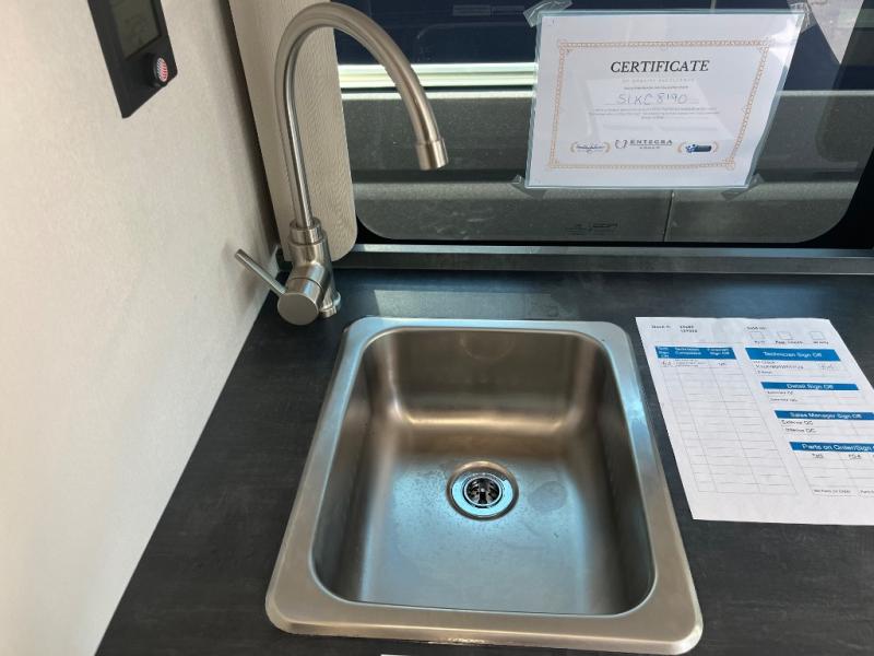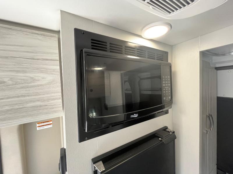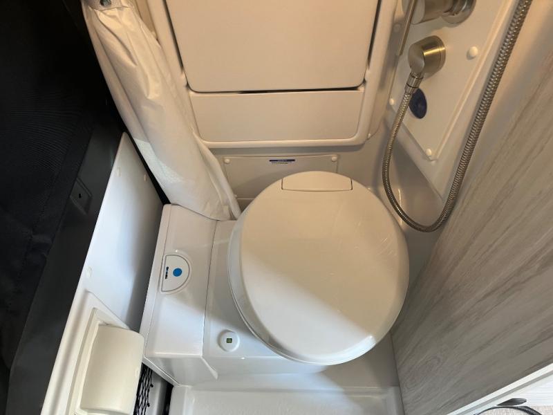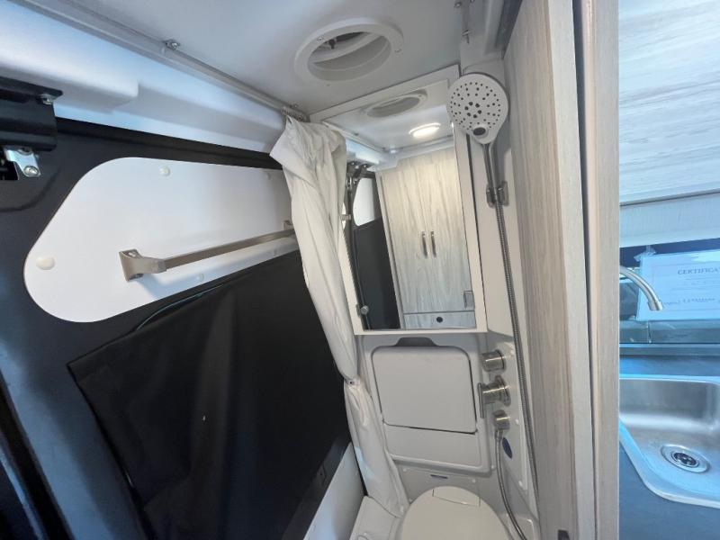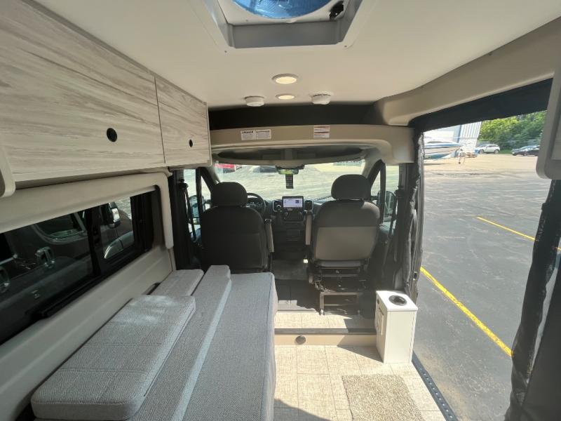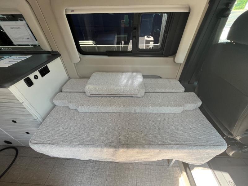 Any trip in this camper van will be spent in comfort thanks to the convenient wet bath and full kitchen amenities. You can whip up a hearty breakfast on the portable induction cooktop or use the microwave oven. There is a stainless steel sink with a cover for more prep space, and the pressed countertops will be easy to clean. After you've hiked for the day and gotten cleaned up in the rear wet bath, you can relax on the 54" sofa that will convert to a 54" x 72" bed. There is also a 27" bench seat for more seating space, overhead cabinets for storage, and an overhead TV to keep you entertained.