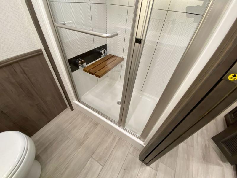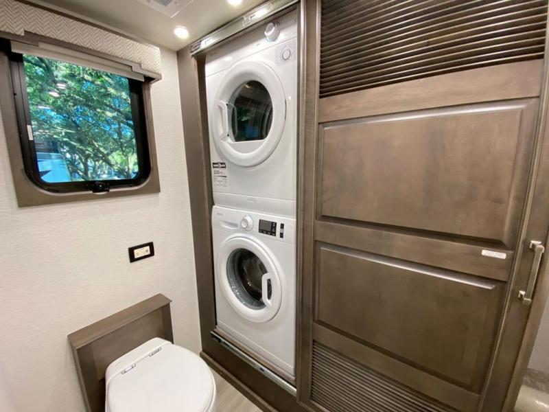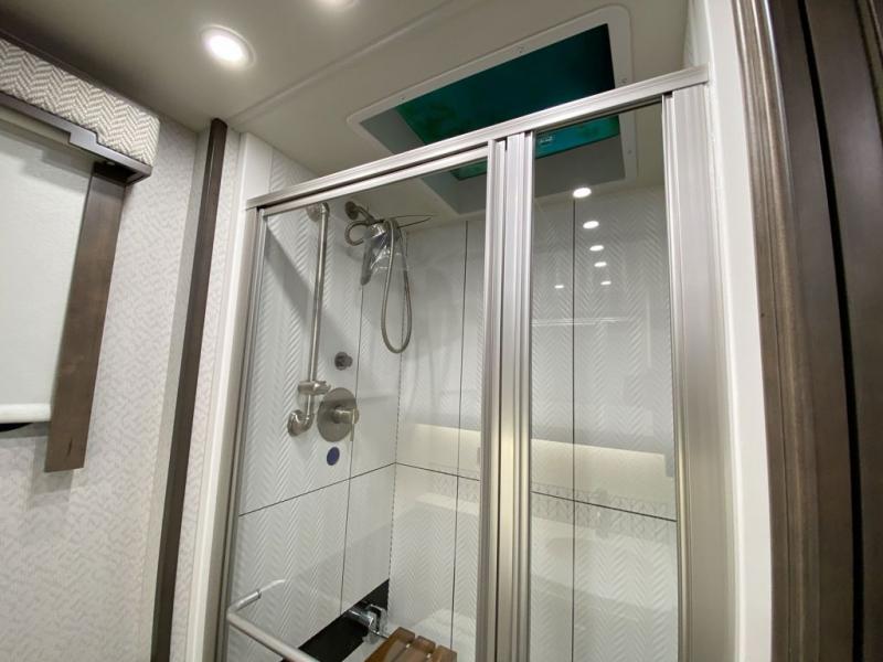 With any Aspire Class A diesel motorhome by Entegra Coach you will enjoy a smooth ride thanks to the Spartan K2 raised-rail chassis, the independent front suspension, and the E-Z Steer adjustable power steering assist. The leather captain's seats include 6-way power adjustment, lumbar and footrest functions that will have you sitting in the lap of luxury, plus there is a Valid Truline air leveling system with auxiliary air compressor for a smooth ride and easy set up. You'll find many high-end features inside, including a Teakwood shower seat in the bath, a decorative ceiling feature, solid surface countertops with dimmable LED accent lighting, and premium Crown Compass furniture. The Aspire also features exterior amenities that will make being on the road easier than ever. The push-button, power-unlatching baggage doors let you unload in record-time, and the Girard awnings will provide tons of shade to relax outdoors. A few new features you are sure to enjoy include a portable Shark vacuum cleaner, a Splendide washer and dryer, plus a filtered water dispenser at the kitchen sink!