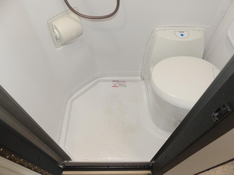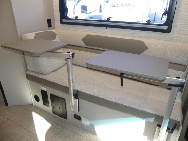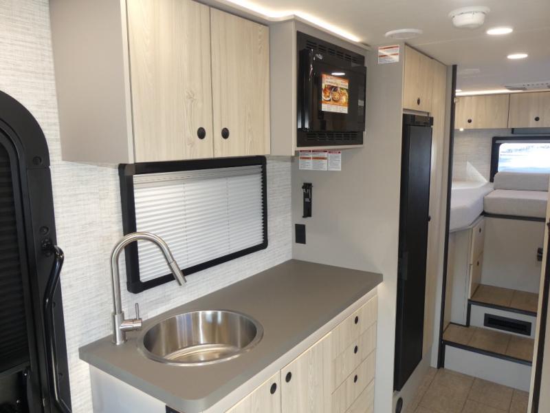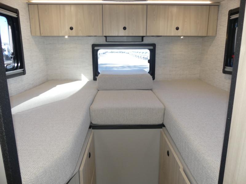 Pack your bags and load up the bikes in this all-wheel drive coach for two! Once you're parked for the day, you can swivel the seats around and relax with a cold drink. The kitchen includes everything you need to whip up a quick lunch, including an induction cooktop and a convection microwave, and the stainless steel sink will make clean up a breeze. There is a bench seat with tables where you can dine at, or you might just sit outside in your camp chair under the 15' 6" awning or optional 7' rear awning. The wet bath includes a shower with a curtain surround, a medicine cabinet with a mirror, and an Aqua View Showermiser water management system. When you're ready to call it a night, you'll find twin beds with a king bed conversion, and there are dual wardrobes to keep your clothes tidy!