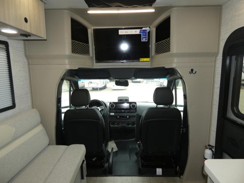 The Condor Class C diesel motorhome by Entegra Coach is ready for adventure! Not only does this coach feature durable TuffShell construction, but it also sits on a Mercedes-Benz 3500 all-wheel drive chassis. There is a 10.25 in. integrated Mercedes-Benz MBUX infotainment center, active lane keeping assist, crosswind assist, and many more safety features to give you peace of mind. There is also an outside shower, a 360W roof mounted solar panel with a dual controller, a remote keyless entry, and many more convenient exterior features. Inside, you'll be met with residential vinyl flooring, a custom-molded ABS cab-over with storage, pressed countertops, and privacy shades for the cab windows for added privacy!