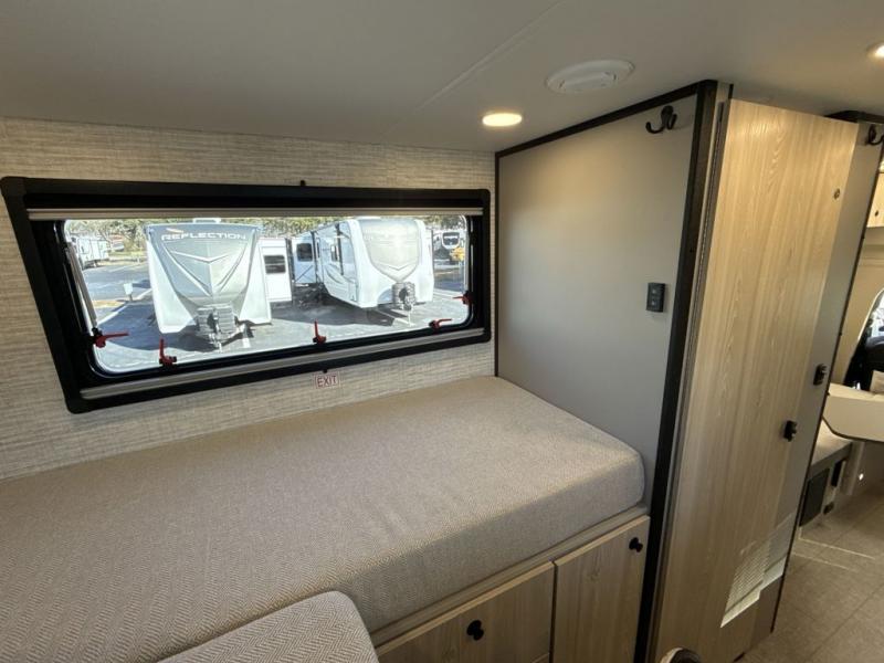 Pack your bags and load up the bikes in this all-wheel drive coach for two! Once you're parked for the day, you can swivel the seats around and relax with a cold drink. The kitchen includes everything you need to whip up a quick lunch, including an induction cooktop and a convection microwave, and the stainless steel sink will make clean up a breeze. There is a bench seat with tables where you can dine at, or you might just sit outside in your camp chair under the 15' 6" awning or optional 7' rear awning. There is even an outdoor kitchen option for added convenience! The wet bath includes a shower with a curtain surround, a medicine cabinet with a mirror, and an Aqua View Showermiser water management system. When you're ready to call it a night, you'll find twin beds with a king bed conversion, and there are dual wardrobes to keep your clothes tidy!
