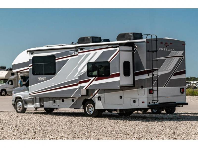 MSRP $201,992. The Ultimate in Compact Luxury Motor Homes is Here! Introducing the new 2025 Entegra Coach Esteem with features including new full body paint exteriors. Now you and your family can enjoy the exceptional craftsmanship, premier drive and even Entegra Coach's industry leading 2-Year Limited, 5-Year Structural, Transferable Warranty! This beautiful RV also features the optional full-body paint exterior, bedroom TV, sun folding windshield shade, 2 A/Cs, aluminum rims and customer value package! Entegra Coach prides itself as having the "quietest riding, best handling luxury diesels on the market today" and the all new Entegra Coach Esteem is following in those very footsteps. The exclusive E-Ride LX Handling Package found in the Esteem boast a computer-balanced driveshaft, an oversized stabilizing bar, Bilstein shocks, rubber isolation mounts and Hellwig L-35 helper springs for incomparable drivability. The Entegra is the only class C on the market to minimize "road fatigue" through construction and materials. The standard features list is nothing short of extraordinary including a one-piece seamless molded fiberglass front cap with fiberglass wings, an automotive and bonded panoramic front window with power black-out interior shade and a full aluminum front cab-over cage for superior strength and coach integrity. Additional construction and feature highlights include a one-piece fiberglass roof, frameless and tinted windows, total in-house water filtration system, a dream dinette™, a full cab-over bunk with an incredible 750-lb. rating, automotive design ABS molded front sleeper compartment with integrated cup holders, cab-over entertainment center, bedroom TV, pillow top mattress, stainless steel appliances, an inverter, automatic one touch leveling, solid hardwood cabinet doors with hidden hinges, full extension drawer guides, frame mounted seatbelts (sofa and both dinette benches), residential full vinyl flooring with no ducts (all ducts installed in toe kicks), stainless exterior trim package, solid surface kitchen counter and slide-out counter extension in select floor plans, solid surface sink covers, chrome exterior mirrors with integrated side-view cameras, extra large fiberglass running boards and TuffShell™ vacuum bonded lamination process in sidewalls, roof, and floor. The R-7 high density bead foam insulation will keep the Entegra far better insulated and quieter inside as well. Electro-Galvanized Steel backers are utilized within the walls as anchor points for superior structural integrity. Structurwood™ Decking is utilized in the floors to eliminate creaking. Other unique features include thick insulated compartment doors, a slide-out battery tray, one-piece Roto-Cast baggage compartments, heat pads for holding tanks, a lighted step well with electric entrance steps, a power awning with LED light strip, energy efficient LED ceiling lights, fully ducted and even air flow throughout the coach and an Energy Management System. For additional details on this unit and our entire inventory including brochures, window sticker, videos, photos, reviews & testimonials as well as additional information about Motor Home Specialist and our manufacturers please visit us at MHSRV.com or call 800-335-6054. At Motor Home Specialist, we DO NOT charge any prep or orientation fees like you will find at other dealerships. All sale prices include a 200-point inspection, interior & exterior wash, detail service and a fully automated high-pressure rain booth test and coach wash that is a standout service unlike that of any other in the industry. You will also receive a thorough coach orientation with an MHSRV technician, a night stay in our delivery park featuring landscaped and covered pads with full hook-ups and much more! Read Thousands upon Thousands of 5-Star Reviews at MHSRV.com and See What They Had to Say About Their Experience at Motor Home Specialist. WHY PAY MORE? WHY SETTLE FOR LESS?