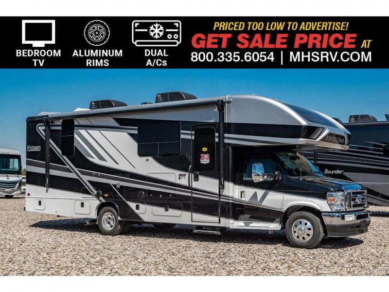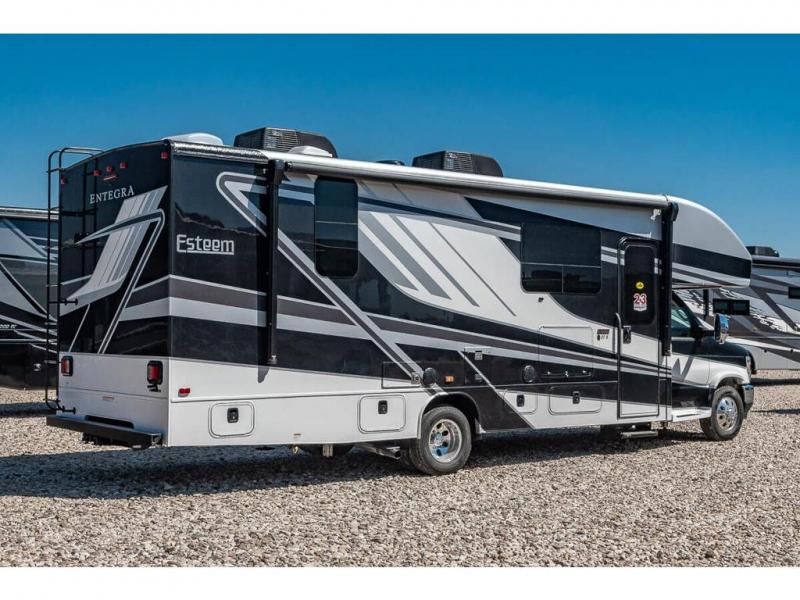 MSRP $201,992. The Ultimate in Compact Luxury Motor Homes is Here! Introducing the new 2025 Entegra Coach Esteem with features including new full body paint exteriors. Now you and your family can enjoy the exceptional craftsmanship, premier drive and even Entegra Coach's industry leading 2-Year Limited, 5-Year Structural, Transferable Warranty! This beautiful RV also features the optional full-body paint exterior, bedroom TV, sun folding windshield shade, 2 A/Cs, aluminum rims and customer value package! Entegra Coach prides itself as having the "quietest riding, best handling luxury diesels on the market today" and the all new Entegra Coach Esteem is following in those very footsteps. The exclusive E-Ride LX Handling Package found in the Esteem boast a computer-balanced driveshaft, an oversized stabilizing bar, Bilstein shocks, rubber isolation mounts and Hellwig L-35 helper springs for incomparable drivability. The Entegra is the only class C on the market to minimize "road fatigue" through construction and materials. The standard features list is nothing short of extraordinary including a one-piece seamless molded fiberglass front cap with fiberglass wings, an automotive and bonded panoramic front window with power black-out interior shade and a full aluminum front cab-over cage for superior strength and coach integrity. Additional construction and feature highlights include a one-piece fiberglass roof, frameless and tinted windows, total in-house water filtration system, a dream dinette™, a full cab-over bunk with an incredible 750-lb. rating, automotive design ABS molded front sleeper compartment with integrated cup holders, cab-over entertainment center, bedroom TV, pillow top mattress, stainless steel appliances, an inverter, automatic one touch leveling, solid hardwood cabinet doors with hidden hinges, full extension drawer guides, frame mounted seatbelts (sofa and both dinette benches), residential full vinyl flooring with no ducts (all ducts installed in toe kicks), stainless exterior trim package, solid surface kitchen counter and slide-out counter extension in select floor plans, solid surface sink covers, chrome exterior mirrors with integrated side-view cameras, extra large fiberglass running boards and TuffShell™ vacuum bonded lamination process in sidewalls, roof, and floor. The R-7 high density bead foam insulation will keep the Entegra far better insulated and quieter inside as well. Electro-Galvanized Steel backers are utilized within the walls as anchor points for superior structural integrity. Structurwood™ Decking is utilized in the floors to eliminate creaking. Other unique features include thick insulated compartment doors, a slide-out battery tray, one-piece Roto-Cast baggage compartments, heat pads for holding tanks, a lighted step well with electric entrance steps, a power awning with LED light strip, energy efficient LED ceiling lights, fully ducted and even air flow throughout the coach and an Energy Management System. For additional details on this unit and our entire inventory including brochures, window sticker, videos, photos, reviews & testimonials as well as additional information about Motor Home Specialist and our manufacturers please visit us at MHSRV.com or call 800-335-6054. At Motor Home Specialist, we DO NOT charge any prep or orientation fees like you will find at other dealerships. All sale prices include a 200-point inspection, interior & exterior wash, detail service and a fully automated high-pressure rain booth test and coach wash that is a standout service unlike that of any other in the industry. You will also receive a thorough coach orientation with an MHSRV technician, a night stay in our delivery park featuring landscaped and covered pads with full hook-ups and much more! Read Thousands upon Thousands of 5-Star Reviews at MHSRV.com and See What They Had to Say About Their Experience at Motor Home Specialist. WHY PAY MORE? WHY SETTLE FOR LESS?