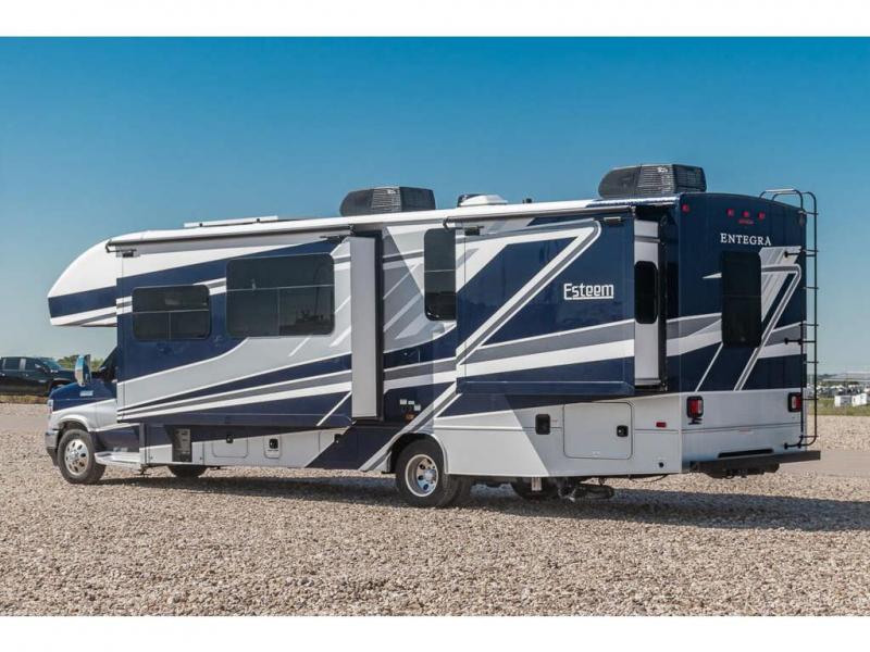 MSRP $203,703. The Ultimate in Compact Luxury Motor Homes is Here! Introducing the new 2025 Entegra Coach Esteem with features including new full body paint exteriors. Now you and your family can enjoy the exceptional craftsmanship, premier drive and even Entegra Coach's industry leading 2-Year Limited, 5-Year Structural, Transferable Warranty! This beautiful RV also features the optional full-body paint exterior, bedroom TV, sun folding windshield shade, theater seats, 2 A/Cs, 15 Cu. Ft' 12V refrigerator, aluminum rims and customer value package! Entegra Coach prides itself as having the "quietest riding, best handling luxury diesels on the market today" and the all new Entegra Coach Esteem is following in those very footsteps. The exclusive E-Ride LX Handling Package found in the Esteem boast a computer-balanced driveshaft, an oversized stabilizing bar, Bilstein shocks, rubber isolation mounts and Hellwig L-35 helper springs for incomparable drivability. The Entegra is the only class C on the market to minimize "road fatigue" through construction and materials. The standard features list is nothing short of extraordinary including a one-piece seamless molded fiberglass front cap with fiberglass wings, an automotive and bonded panoramic front window with power black-out interior shade and a full aluminum front cab-over cage for superior strength and coach integrity. Additional construction and feature highlights include a one-piece fiberglass roof, frameless and tinted windows, total in-house water filtration system, a dream dinette™, a full cab-over bunk with an incredible 750-lb. rating, automotive design ABS molded front sleeper compartment with integrated cup holders, cab-over entertainment center, bedroom TV, pillow top mattress, stainless steel appliances, an inverter, automatic one touch leveling, solid hardwood cabinet doors with hidden hinges, full extension drawer guides, frame mounted seatbelts (sofa and both dinette benches), residential full vinyl flooring with no ducts (all ducts installed in toe kicks), stainless exterior trim package, solid surface kitchen counter and slide-out counter extension in select floor plans, solid surface sink covers, chrome exterior mirrors with integrated side-view cameras, extra large fiberglass running boards and TuffShell™ vacuum bonded lamination process in sidewalls, roof, and floor. The R-7 high density bead foam insulation will keep the Entegra far better insulated and quieter inside as well. Electro-Galvanized Steel backers are utilized within the walls as anchor points for superior structural integrity. Structurwood™ Decking is utilized in the floors to eliminate creaking. Other unique features include thick insulated compartment doors, a slide-out battery tray, one-piece Roto-Cast baggage compartments, heat pads for holding tanks, a lighted step well with electric entrance steps, a power awning with LED light strip, energy efficient LED ceiling lights, fully ducted and even air flow throughout the coach and an Energy Management System. For additional details on this unit and our entire inventory including brochures, window sticker, videos, photos, reviews & testimonials as well as additional information about Motor Home Specialist and our manufacturers please visit us at MHSRV.com or call 800-335-6054. At Motor Home Specialist, we DO NOT charge any prep or orientation fees like you will find at other dealerships. All sale prices include a 200-point inspection, interior & exterior wash, detail service and a fully automated high-pressure rain booth test and coach wash that is a standout service unlike that of any other in the industry. You will also receive a thorough coach orientation with an MHSRV technician, a night stay in our delivery park featuring landscaped and covered pads with full hook-ups and much more! Read Thousands upon Thousands of 5-Star Reviews at MHSRV.com and See What They Had to Say About Their Experience at Motor Home Specialist. WHY PAY MORE? WHY SETTLE FOR LESS?