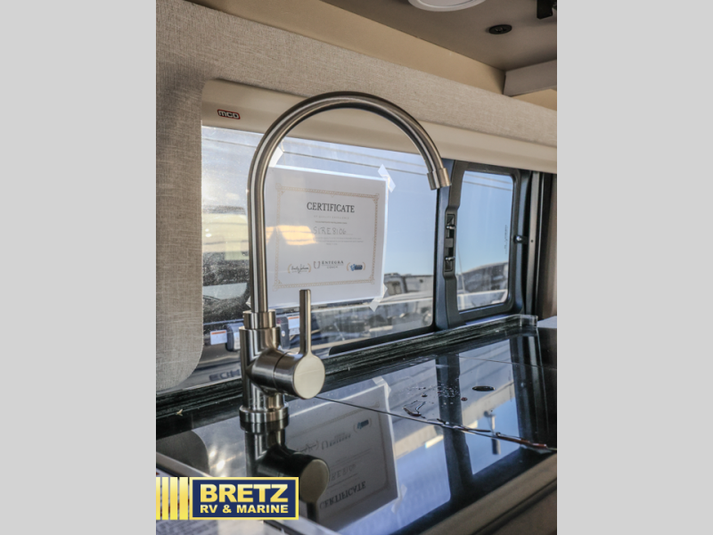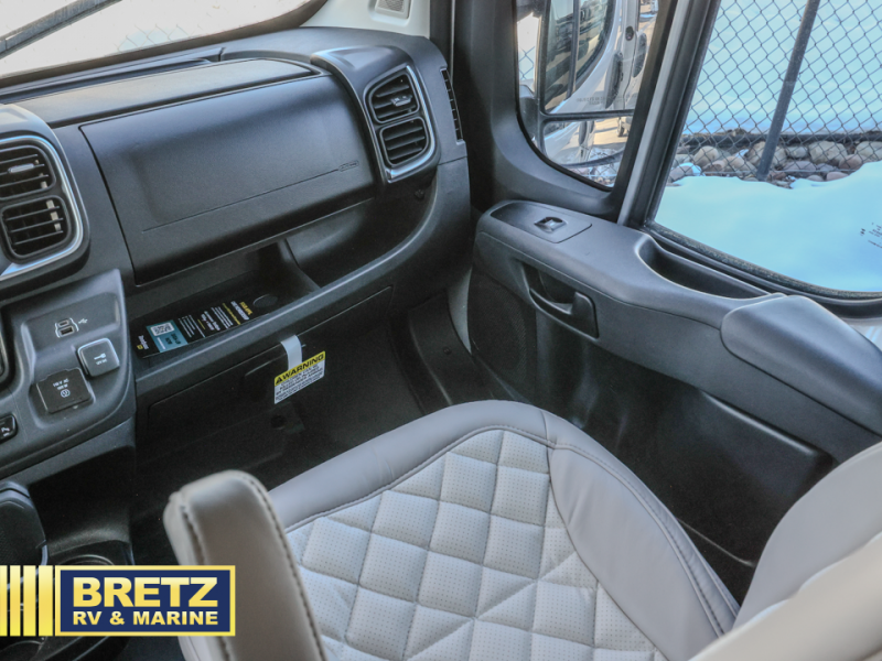 With any Ethos Class B gas motorhome by Entegra you will find helpful technology features, luxury amenities, and a smooth drive thanks to the E-Z Drive system. The 3.6L V6 24V VVT 276HP engine will power your trips near and far, plus there is an Onan 2800-watt gas generator on board and a 1,000-watt inverter. Put the 200W solar panel to use and you can do a little off-grid camping! Each model also includes a Truma Combi Eco Plus water heater and furnace, a 13,500 BTU A/C, a water filtration system, plus many more convenient systems. A Uconnect 5 NAV infotainment center comes standard, along with a backup camera and a cab area privacy shade. You'll be traveling in luxury with residential vinyl flooring, Technoform European-style high-gloss cabinetry, a soft-touch vinyl celling, and solid surface countertops. Start a new adventure today in an Ethos Class B gas motorhome today!
