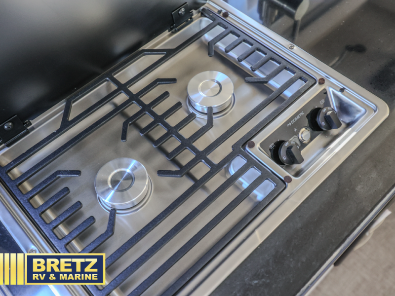 This versatile coach is perfect for two with the option to sleep more when you choose the optional pop top! You can also choose an optional workstation in place of the bench seat up front if you need to get some work done. The wet bath will let you freshen up each day, and the kitchen includes a convection microwave and two burner gas cooktop to cook meals. You'll find a Murphy bed in the back with under-floor storage and pull-out trays, perfect for all your hiking gear! There is also a bench seat as well, along with an overhead cabinet for even more storage.