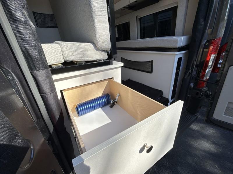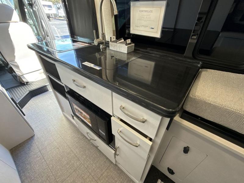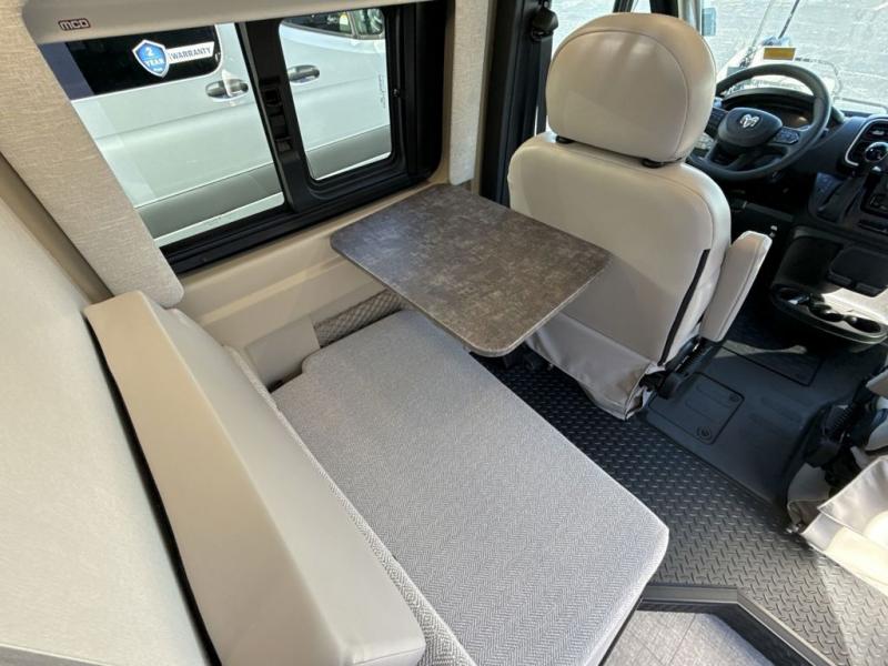 With any Ethos Class B gas motorhome by Entegra you will find helpful technology features, luxury amenities, and a smooth drive thanks to the E-Z Drive system. The 3.6L V6 24V VVT 276HP engine will power your trips near and far, plus there is an Onan 2800-watt gas generator on board and a 1,000-watt inverter. Put the 200W solar panel to use and you can do a little off-grid camping! Each model also includes a Truma Combi Eco Plus water heater and furnace, a 13,500 BTU A/C, a water filtration system, plus many more convenient systems. A Uconnect 5 NAV infotainment center comes standard, along with a backup camera and a cab area privacy shade. You'll be traveling in luxury with residential vinyl flooring, Technoform European-style high-gloss cabinetry, a soft-touch vinyl celling, and solid surface countertops. Start a new adventure today in an Ethos Class B gas motorhome today!