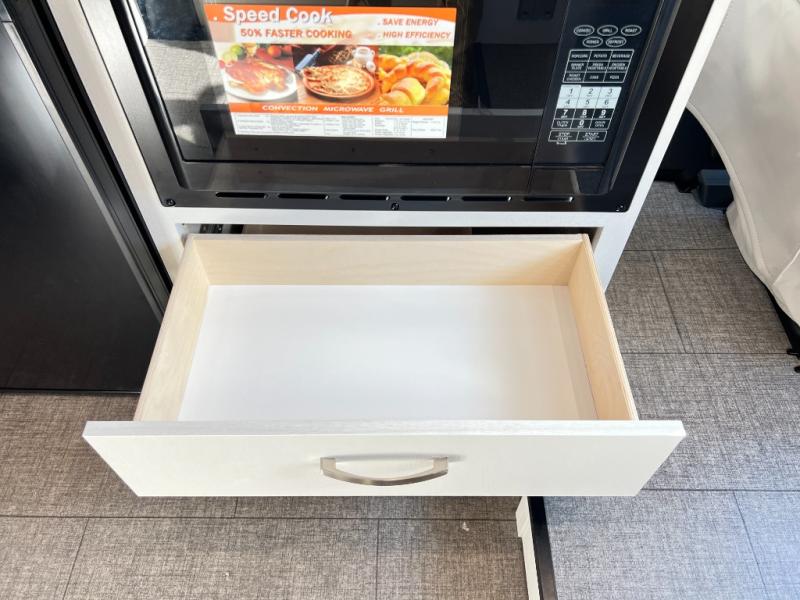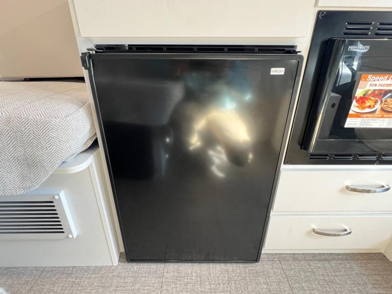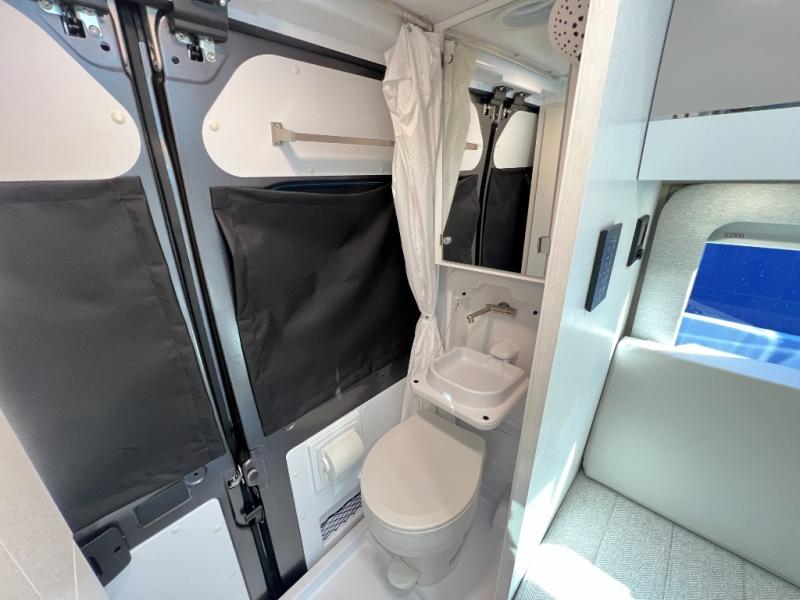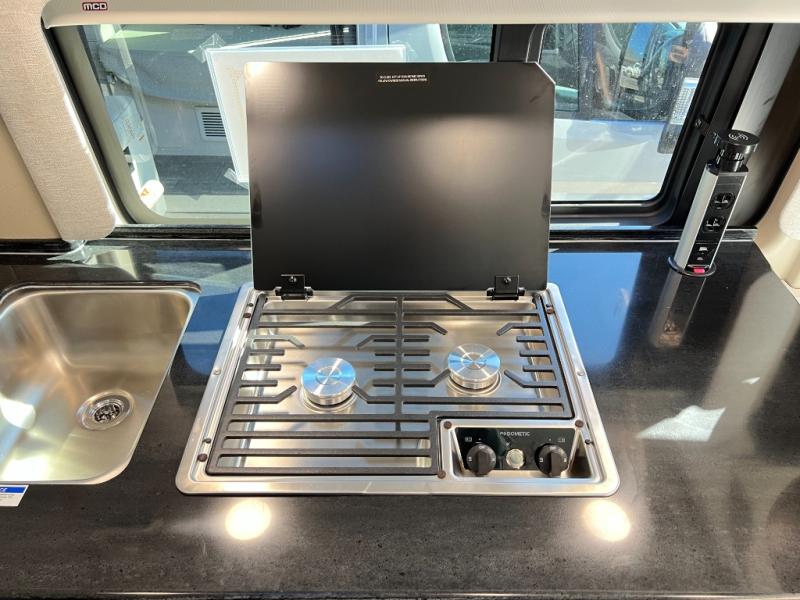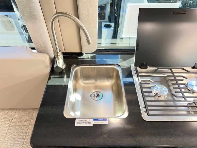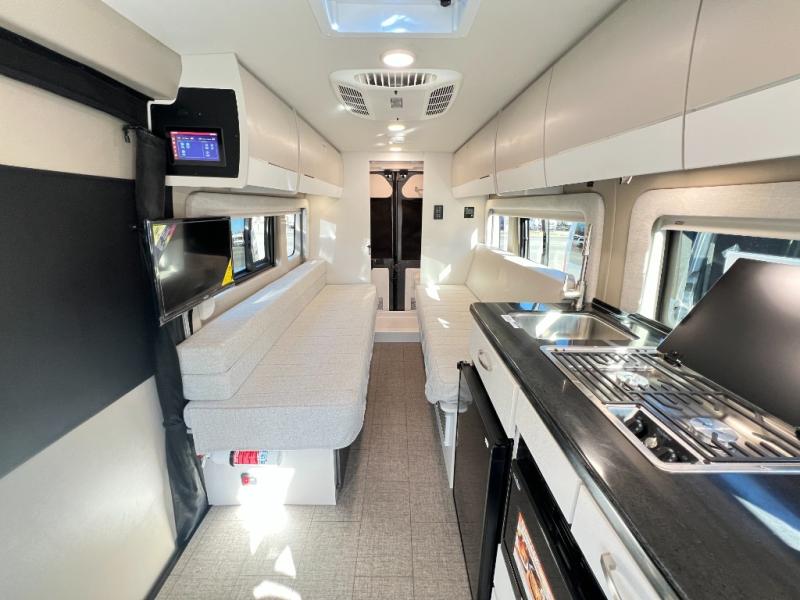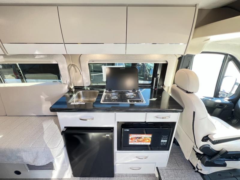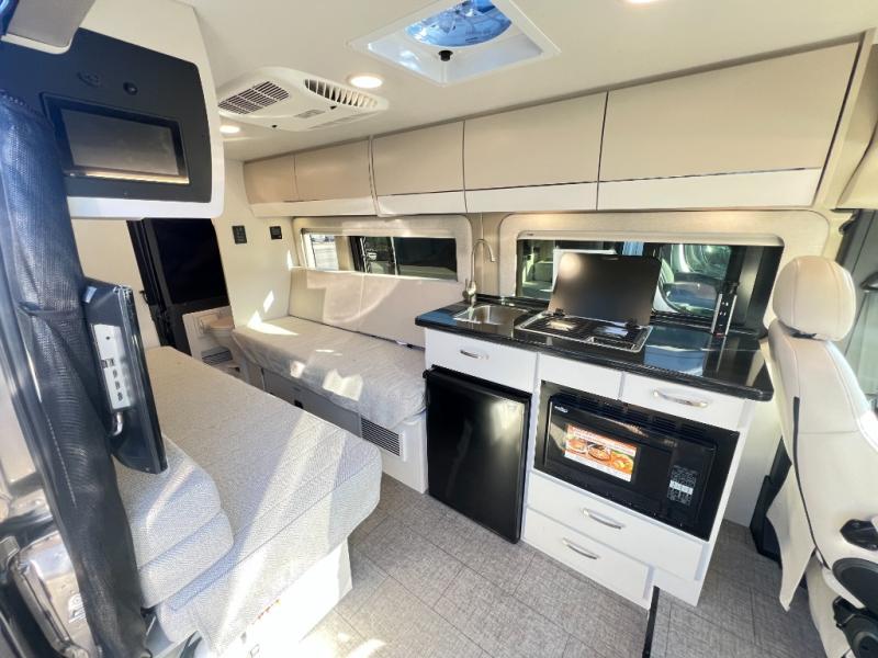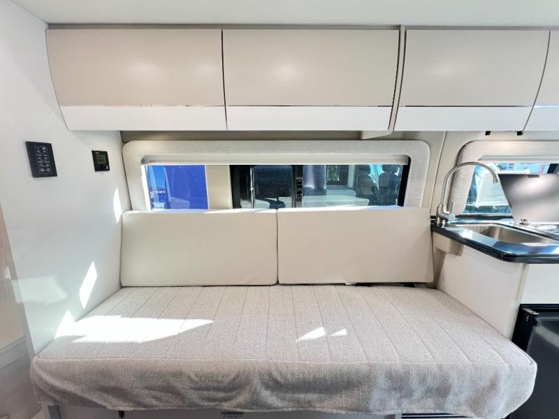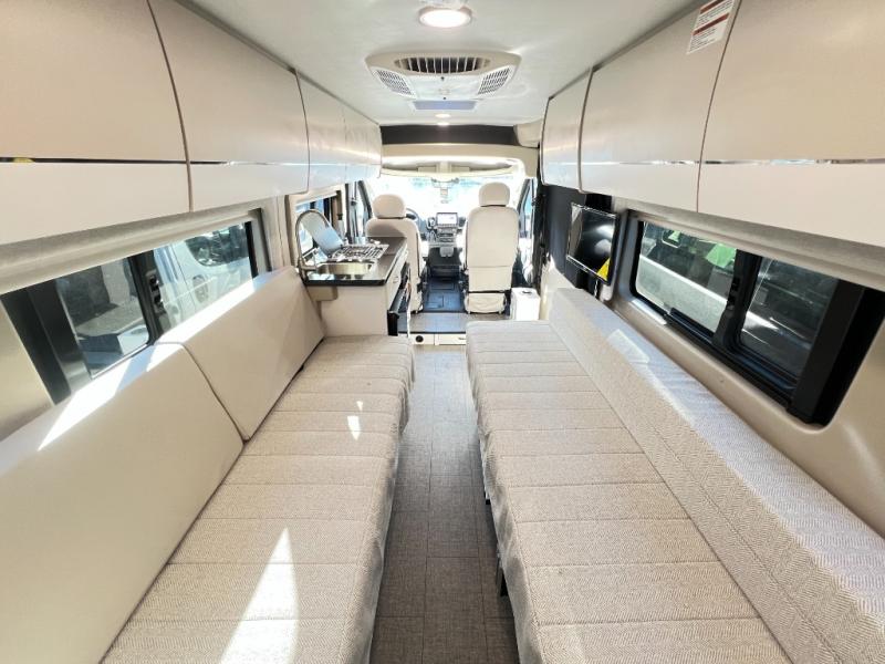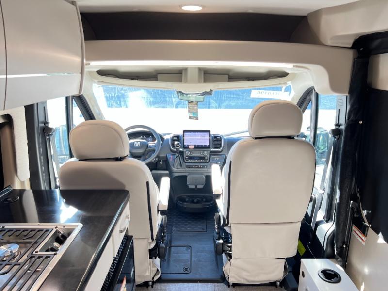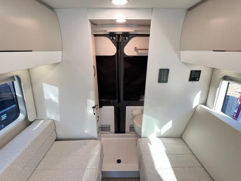 Your trek across country is made comfortable in this coach for two. You can swivel the captains seats around when you get to your destination, or head outdoors to sit under the 13' Thule armless awning with LED lights. The pull-out table indoors will provide a space for your coffee in the morning, while breakfast is being cooked in the convection microwave or on the two burner cooktop. A rear wet bath will allow you to stay clean throughout your trip, and you'll find plenty of storage space for your belongings. You'll love the versatile sleeping arrangements in this model that includes twin-size beds with a filler cushion that converts to a king-size bed, plus there is under-bed storage for your luggage. The optional Li Package can also be added which features a 48V-165 amp hour smart lithium battery, providing 7.9KW hours of power, and more; see dealer for more details!