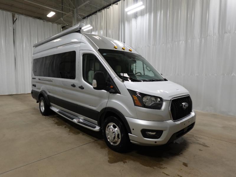 The Entegra Expanse Class B gas motorhome offers the Ford Transit AWD 350HD chassis, so you'll be good to go no matter the terrain or weather. There's a 3.5L EcoBoost V6 engine paired with a 10-speed transmission. You'll also appreciate the utility of all-terrain tires and the heavy-duty trailer tow package with dual 4/7 pin connector. The driving experience is enhanced by cutting-edge safety features like the 360° camera, blind spot assist, and side and reverse sensing systems. Outside amenities include a Carefree® armless motion sensing patio awning, fiberglass running boards, an exterior shower, and both rear and side screen doors. You'll be comfortable no matter what, with the 13,500 BTU air conditioner and Timberline hydronic heating system. An Onan 2800W generator and 200W roof-mounted GoPower® solar panel with integrated control panel both come standard for all your power needs.