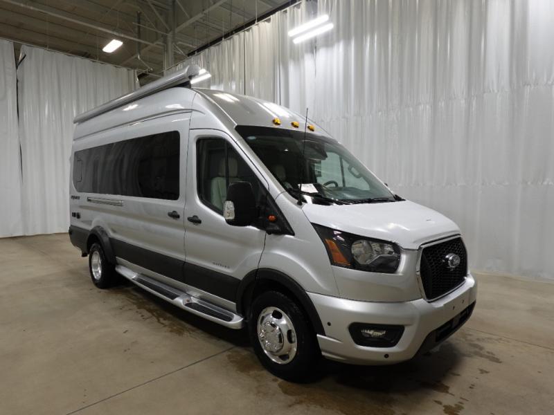 The Entegra Expanse Class B gas motorhome offers the Ford Transit AWD 350HD chassis, so you'll be good to go no matter the terrain or weather. There's a 3.5L EcoBoost V6 engine paired with a 10-speed transmission. You'll also appreciate the utility of all-terrain tires and the heavy-duty trailer tow package with dual 4/7 pin connector. The driving experience is enhanced by cutting-edge safety features like the 360° camera, blind spot assist, and side and reverse sensing systems. Outside amenities include a Carefree® armless motion sensing patio awning, fiberglass running boards, an exterior shower, and both rear and side screen doors. You'll be comfortable no matter what, with the 13,500 BTU air conditioner and Timberline hydronic heating system. An Onan 2800W generator and 200W roof-mounted GoPower® solar panel with integrated control panel both come standard for all your power needs.