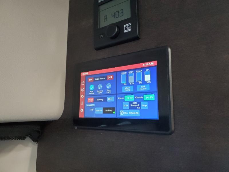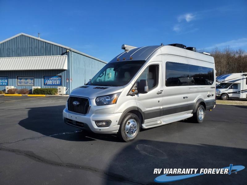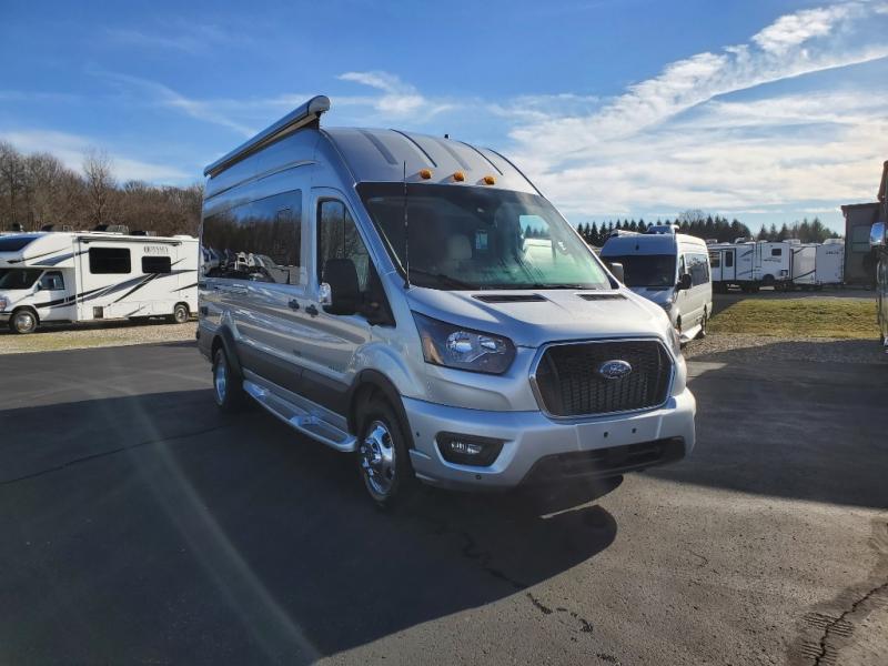 The Entegra Expanse Class B gas motorhome offers the Ford Transit AWD 350HD chassis, so you'll be good to go no matter the terrain or weather. There's a 3.5L EcoBoost V6 engine paired with a 10-speed transmission. You'll also appreciate the utility of all-terrain tires and the heavy-duty trailer tow package with dual 4/7 pin connector. The driving experience is enhanced by cutting-edge safety features like the 360° camera, blind spot assist, and side and reverse sensing systems. Outside amenities include a Carefree® armless motion sensing patio awning, fiberglass running boards, an exterior shower, and both rear and side screen doors. You'll be comfortable no matter what, with the 13,500 BTU air conditioner and Timberline hydronic heating system. An Onan 2800W generator and 200W roof-mounted GoPower® solar panel with integrated control panel both come standard for all your power needs.