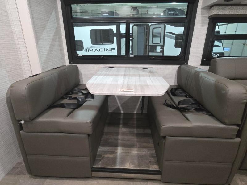With any Odyssey Class C gas motorhome by Entegra Coach, the driver will appreciate the power from the 325 HP engine, the towing capacity from the 7,500 lb. hitch, the tire pressure monitoring system, the navigation from the Sony infotainment center with Apple CarPlay and Android Auto, plus the backup and side-view cameras when parking and driving down the highway. The kitchen offers full amenities including a recessed stainless steel sink with a cutting board sink cover, LED-lit pressed countertops, a decorative backsplash, and a pop-up charging station with 110 outlet and USB plugs to keep your smart phones charged. Get ready for luxury in a Class C, choose your favorite today!