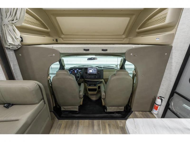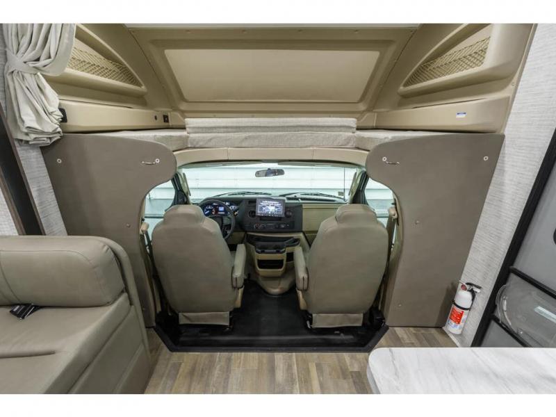 With any Odyssey Class C gas motorhome by Entegra Coach, the driver will appreciate the power from the 325 HP engine, the towing capacity from the 7,500 lb. hitch, the tire pressure monitoring system, the navigation from the Sony infotainment center with Apple CarPlay and Android Auto, plus the backup and side-view cameras when parking and driving down the highway. The kitchen offers full amenities including a recessed stainless steel sink with a cutting board sink cover, LED-lit pressed countertops, a decorative backsplash, and a pop-up charging station with 110 outlet and USB plugs to keep your smart phones charged. Get ready for luxury in a Class C, choose your favorite today!