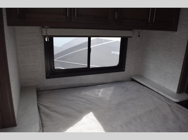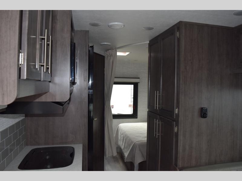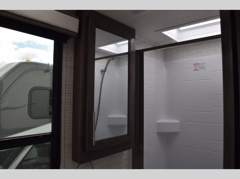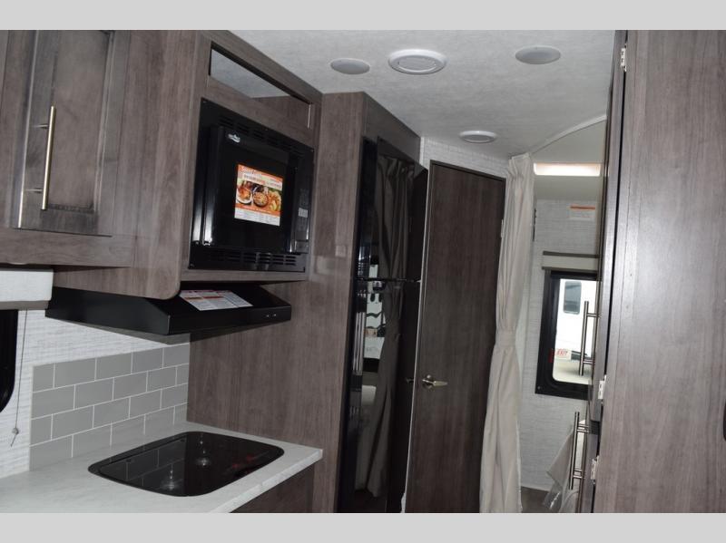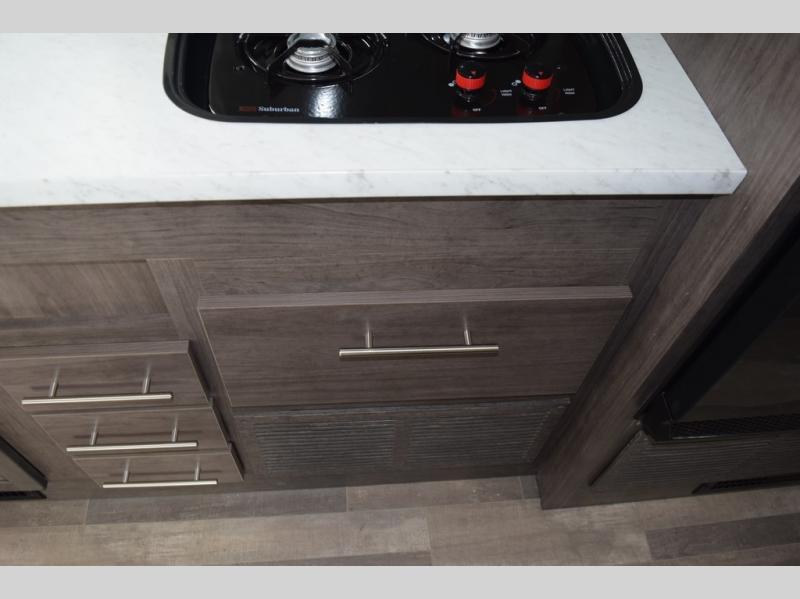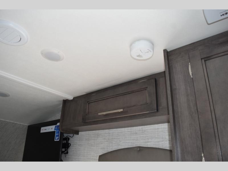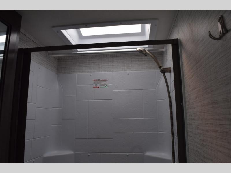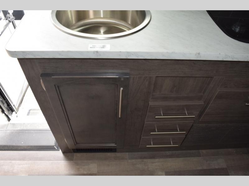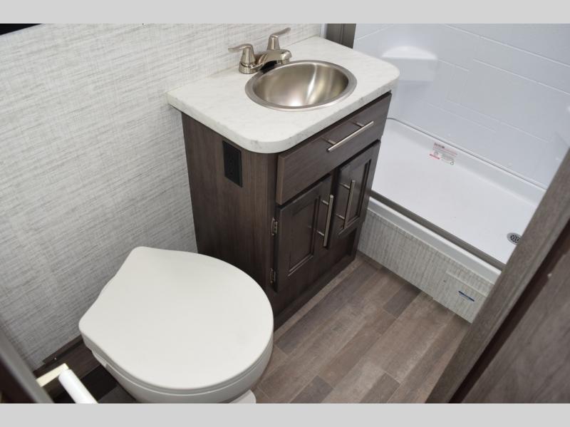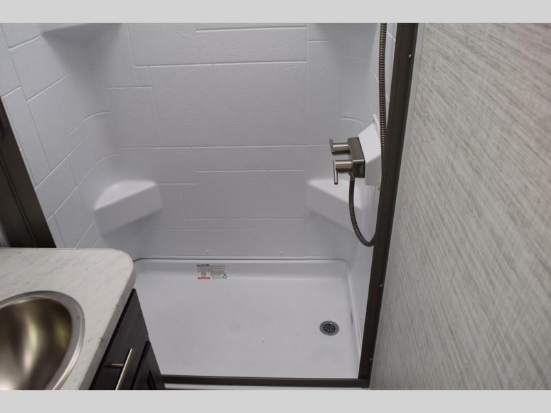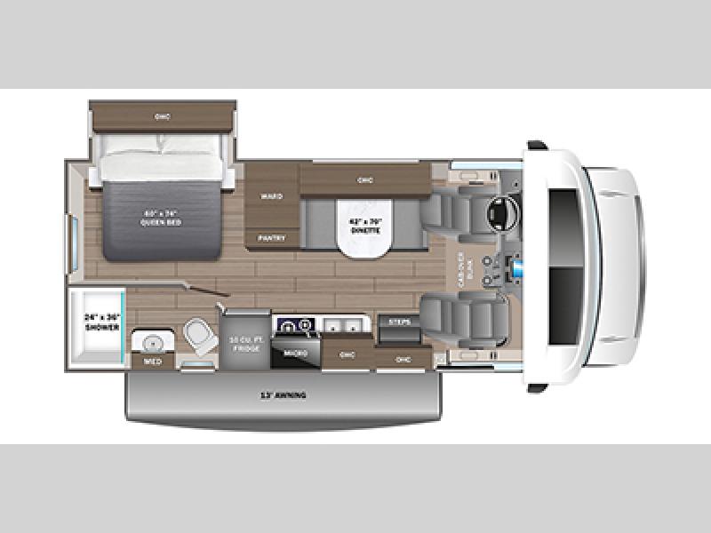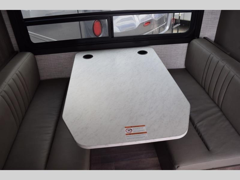 Make your trips complete in this coach that can sleep four to five each night. There is a cab-over bunk with a 750 lb. capacity for guests and an RV queen bed slide out in the rear corner bedroom. The booth dinette can be used to dine at, play games, and even sleep an additional guest or two little ones. A two burner cooktop comes standard in the kitchen, along with a convection microwave, a stainless steel sink, and a 10 cu. ft. refrigerator. You will also appreciate having a full bath on board, and the 13' electric awning outside will provide a place to relax with a cold drink!
