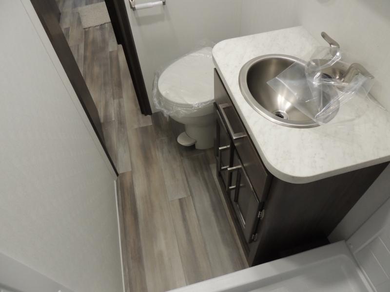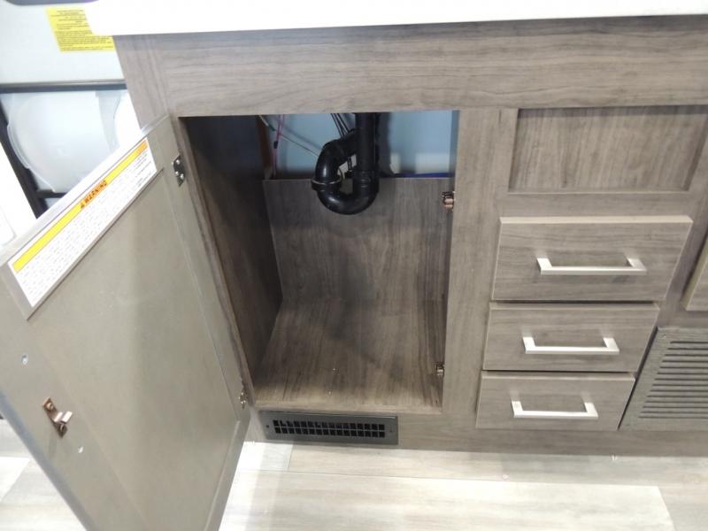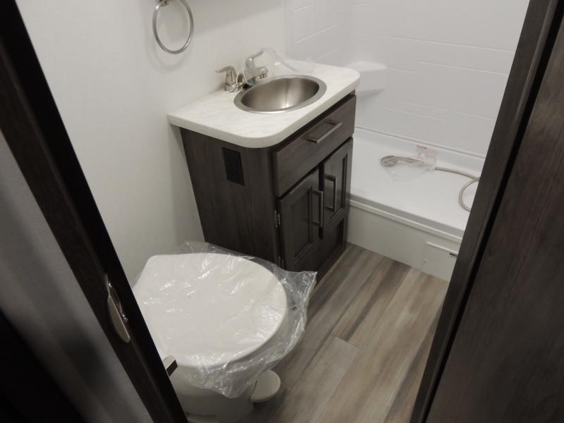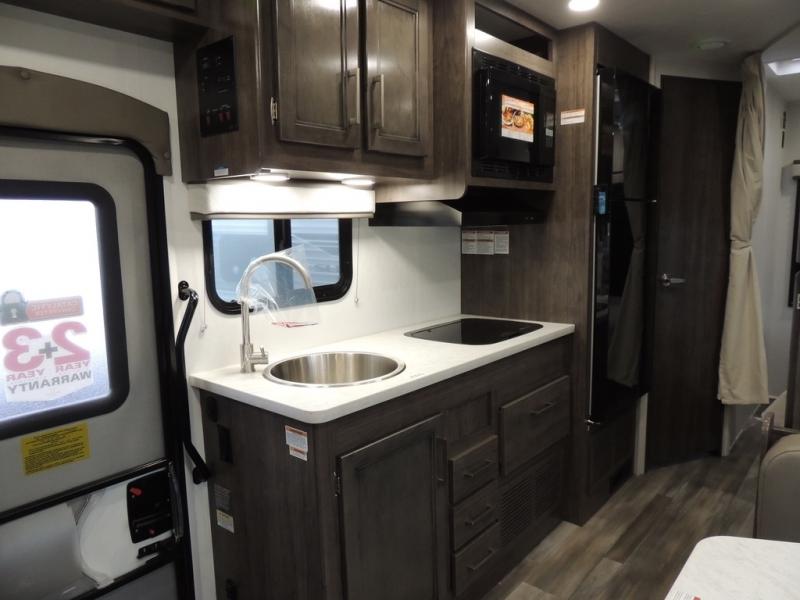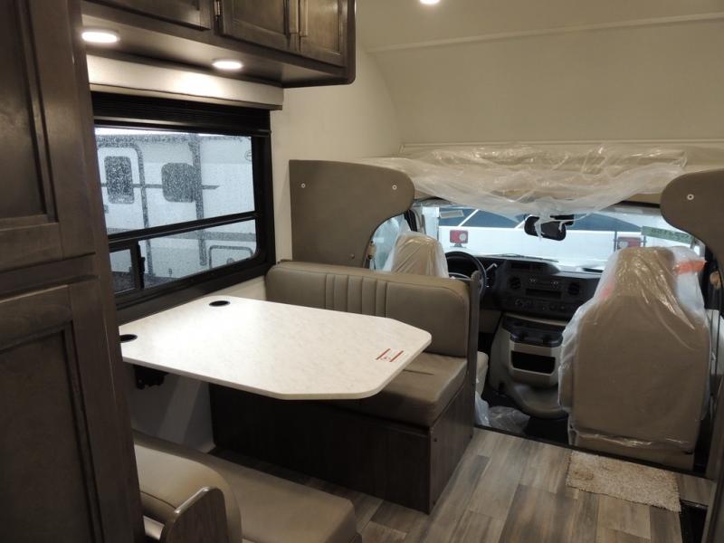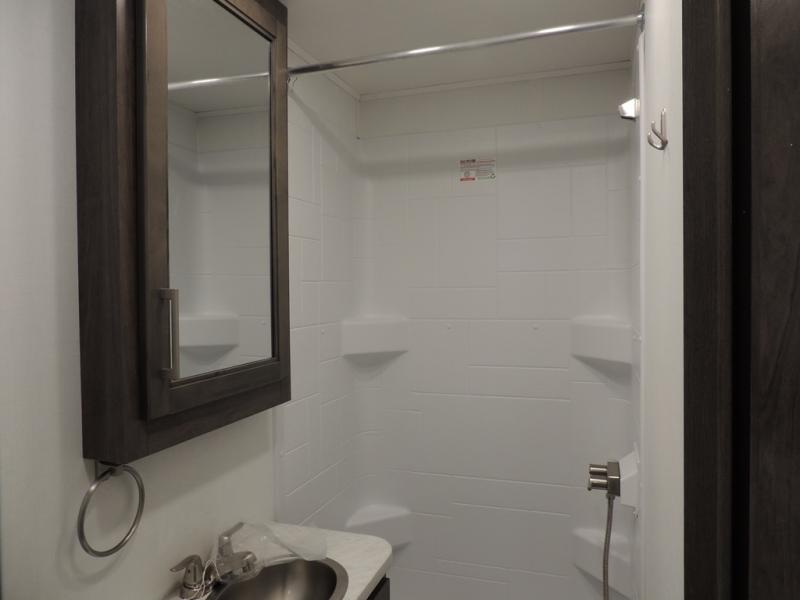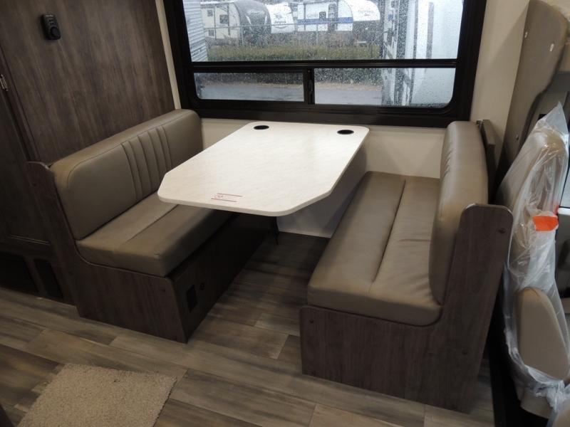 Make your trips complete in this coach that can sleep four to five each night. There is a cab-over bunk with a 750 lb. capacity for guests and an RV queen bed slide out in the rear corner bedroom. The booth dinette can be used to dine at, play games, and even sleep an additional guest or two little ones. A two burner cooktop comes standard in the kitchen, along with a convection microwave, a stainless steel sink, and a 10 cu. ft. refrigerator. You will also appreciate having a full bath on board, and the 13' electric awning outside will provide a place to relax with a cold drink!