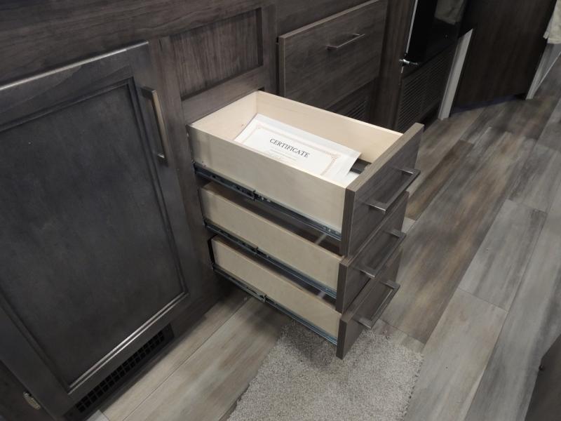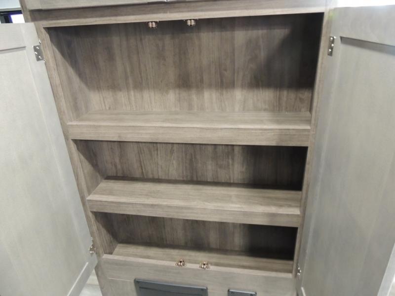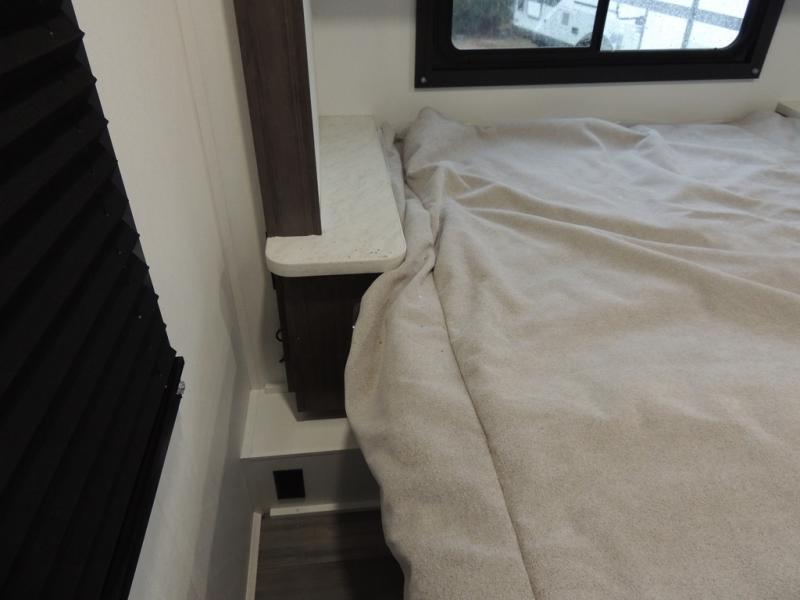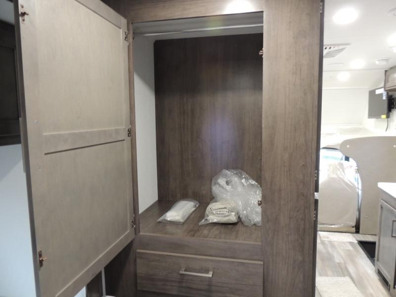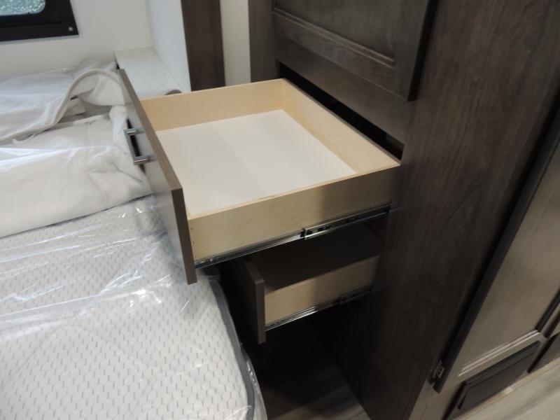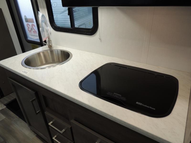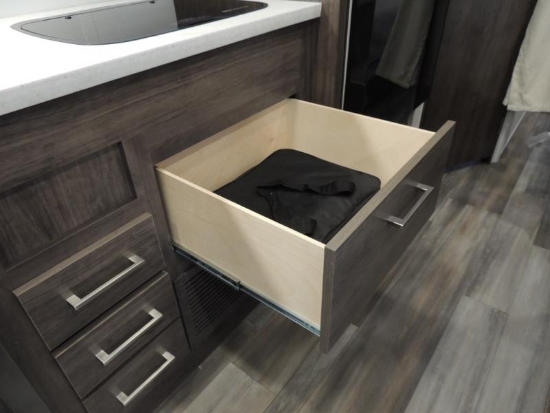 Make your trips complete in this coach that can sleep four to five each night. There is a cab-over bunk with a 750 lb. capacity for guests and an RV queen bed slide out in the rear corner bedroom. The booth dinette can be used to dine at, play games, and even sleep an additional guest or two little ones. A two burner cooktop comes standard in the kitchen, along with a convection microwave, a stainless steel sink, and a 10 cu. ft. refrigerator. You will also appreciate having a full bath on board, and the 13' electric awning outside will provide a place to relax with a cold drink!