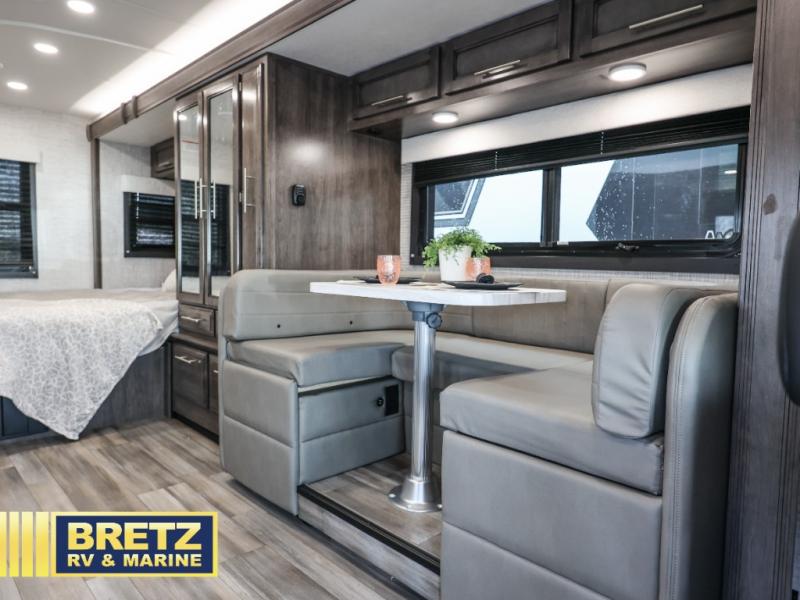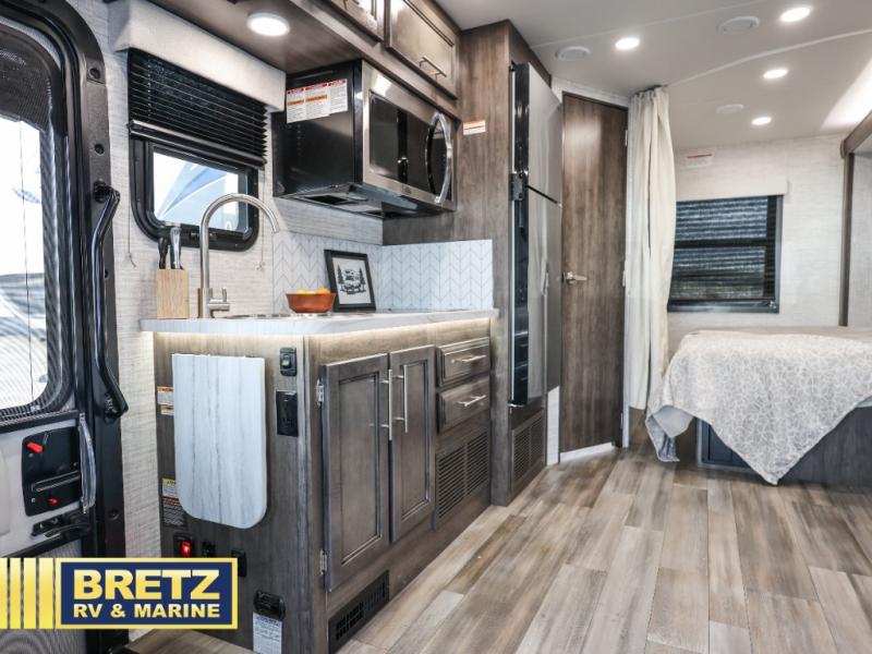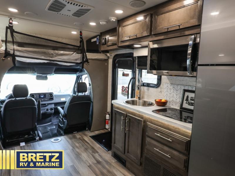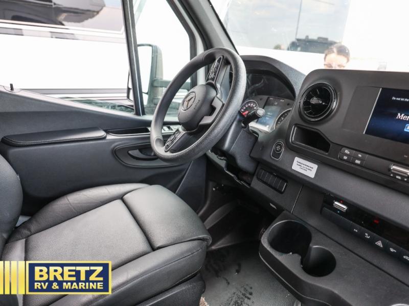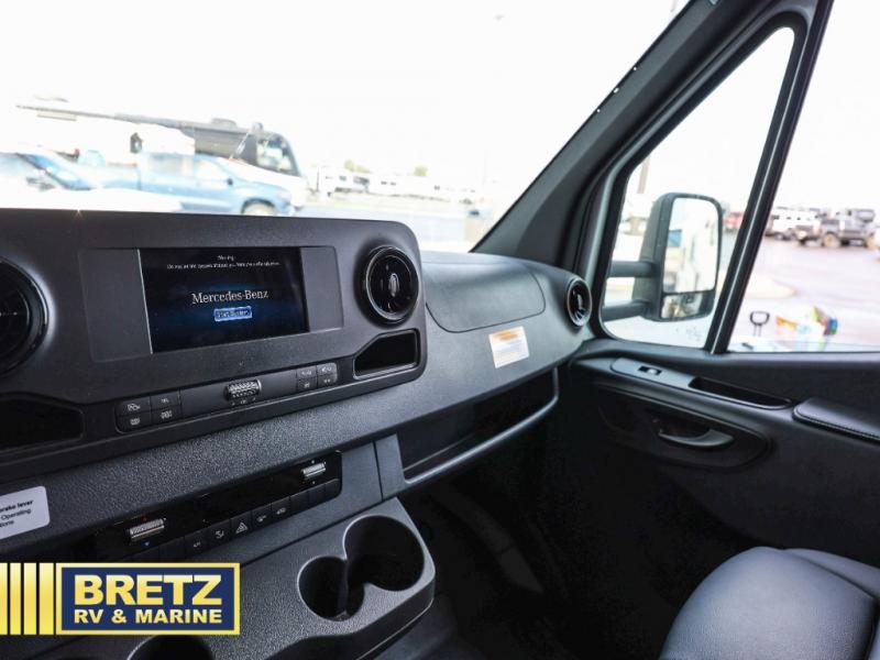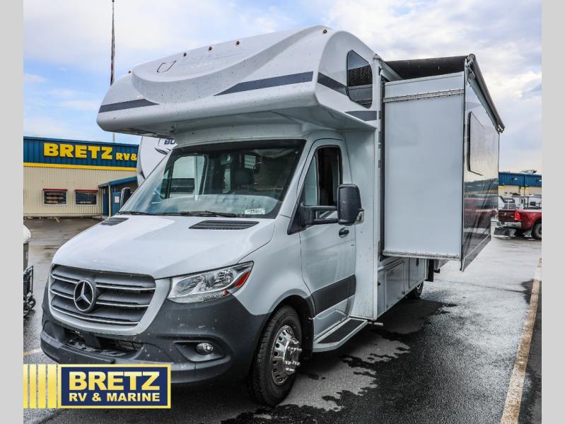 With any Qwest SE Class C diesel motorhome by Entegra Coach, you will enjoy a safe and enjoyable trip each time you take to the road! Each model sits on a durable Mercedes-Benz 3500 chassis with a 170 in. wheelbase and a 9-speed automatic transmission for an overall better driving experience. There is a one-piece, seamless fiberglass front cap to combat leaks, and the TuffShell construction will hold up over time. The driver will appreciate the 7" integrated Mercedes-Benz MBUX infotainment center that includes Apple CarPlay and Android Auto so they can navigate the road like a pro, plus there are backup and side-view cameras for easy parking. You will also appreciate an exterior utility center, an outside shower, electric stabilizer jacks, and many more exterior conveniences. Head inside to find LED-lit pressed countertops, decorative kitchen backsplash, pleated blackout shades for added privacy, and high-intensity LED ceiling lights to keep your space bright and open.