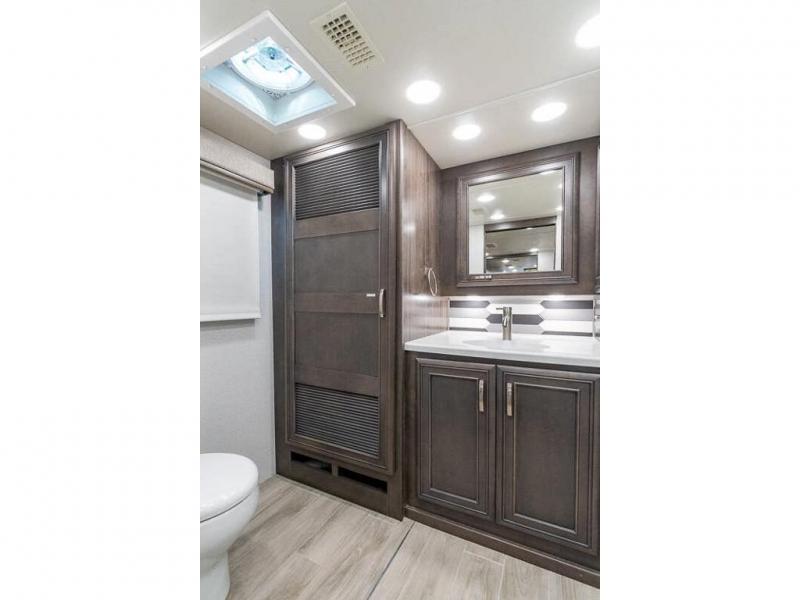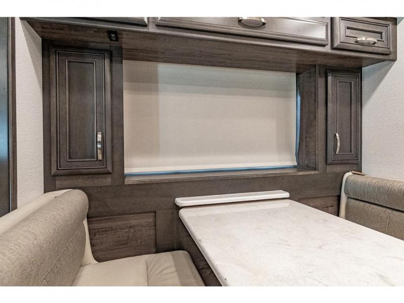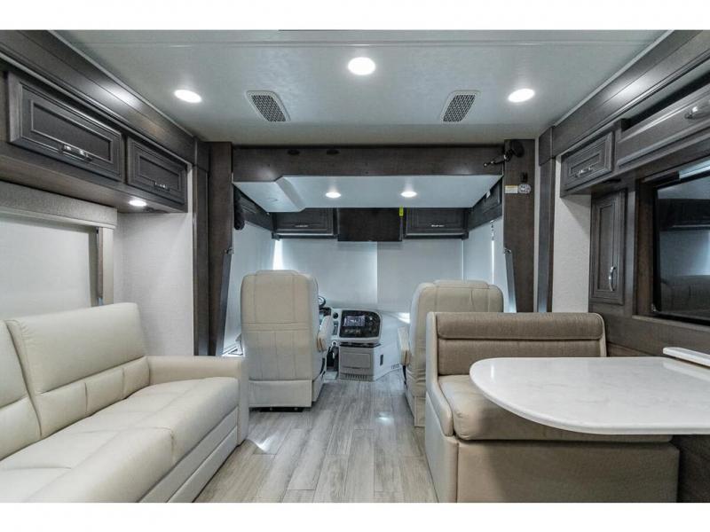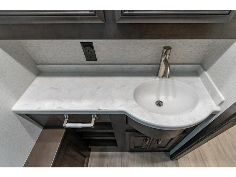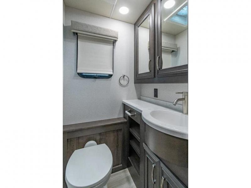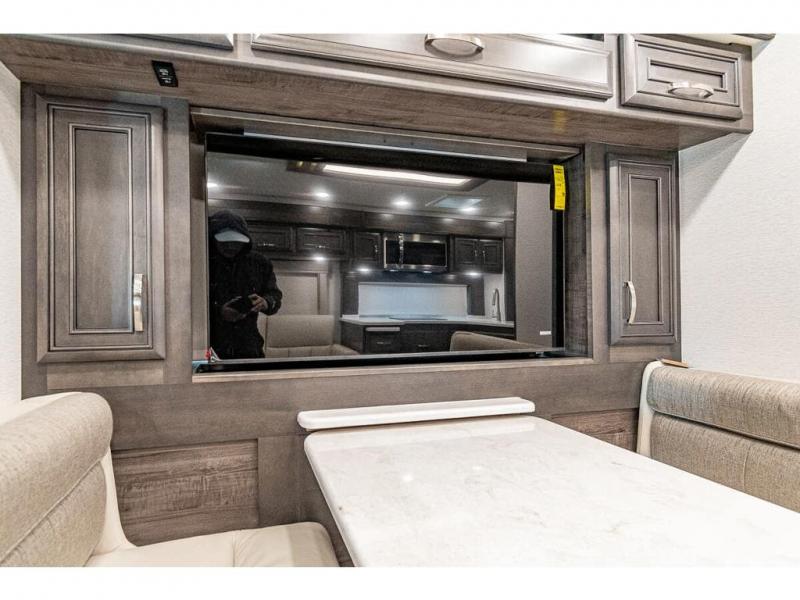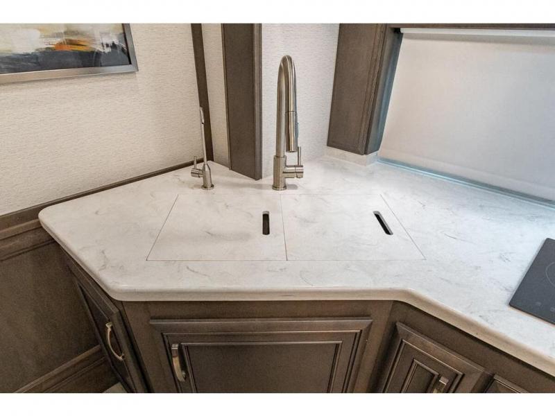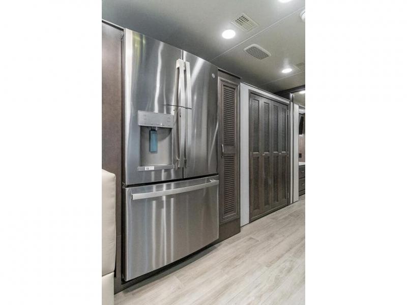 You can comfortably sleep seven to eight people in this spacious coach thanks to the power bunk beds across from the half bath, the power head lift king bed, plus the tri-fold sofa and booth dinette within the main living area. If you have more guests, then you can add the optional drop-down overhead bunk! You'll find the full rear bath to be convenient with its large linen closet and separate washer and dryer, plus there is a one-piece fiberglass shower with a skylight for more standing space. The chef of your group will love cooking in this Reatta XL kitchen that includes a two burner induction cooktop, a convection microwave oven, plus a plenty of overhead cabinets and a pantry for snacks. Since there is a 50" Samsung 4K UHD Smart TV in the living area, you can make it a movie night, or head outdoors to relax under the Carefree power awnings!
