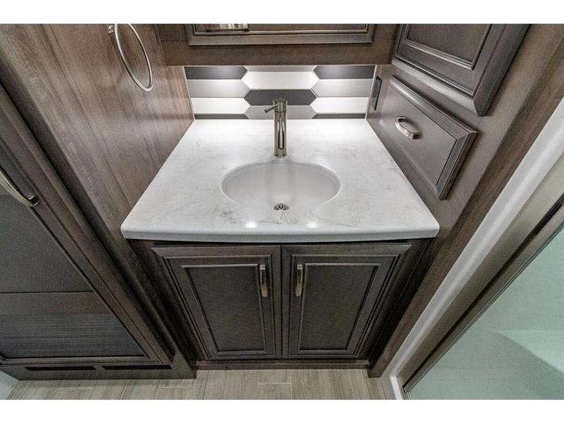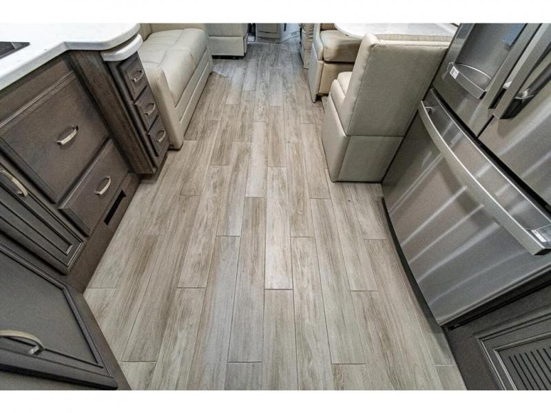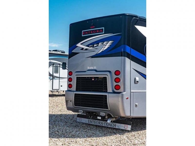 Each Reatta XL Class A diesel motorhome by Entegra Coach is constructed with X-Bridge bracing welded into the chassis frame for added support and a one-piece fiberglass roof with 3/8" plywood decking for durability. A Cummins L9 turbocharged 380 HP engine delivers exceptional power, and there is an independent front air suspension for a smooth drive each time. The interior is made luxurious with premium furniture, hand-laid, woodgrain porcelain tiled floors, solar day shades and blackout night shades, and solid surface countertops. Some of the added amenities included with this coach are the electric radiant floor heating system, the Onan 10,000W diesel generator, and the Aqua View SHOWERMISER water saving system that lets you conserve water. You don't have to look far to find luxury with the Reatta XL. Choose your favorite floorplan today!