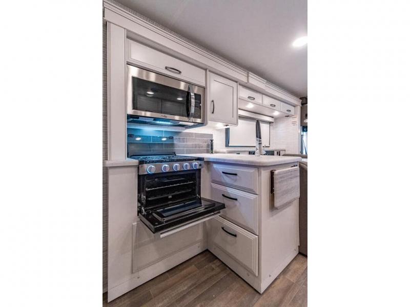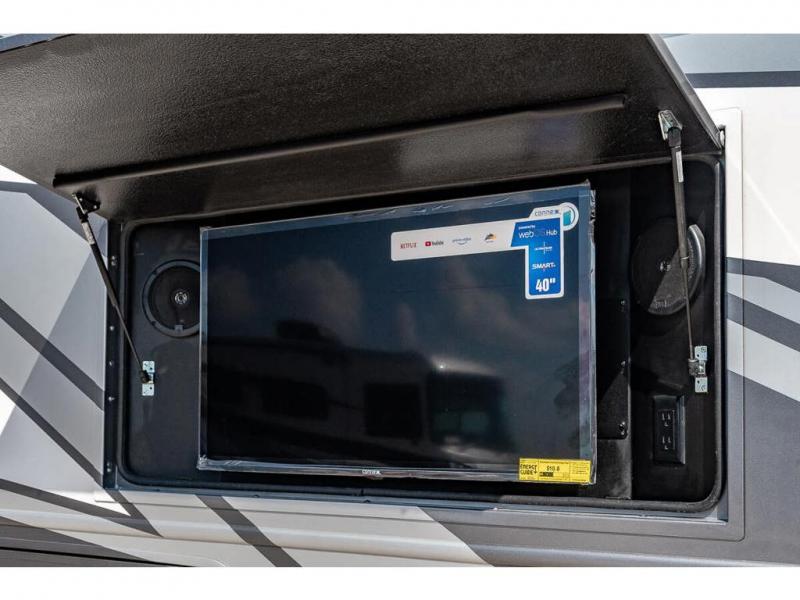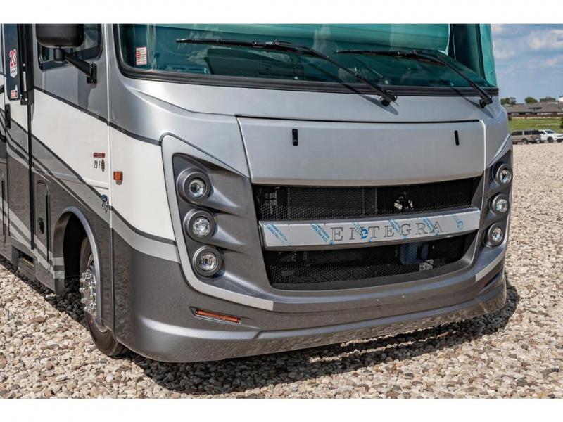 Cruise to your next luxurious camping location in any Entegra Coach Vision Class A gas motorhome! With its high-class features, the Vision makes it quite easy to create memorable and lavish getaways. The exterior comes equipped with an electric patio awning with LED lights, an outside shower, an exterior utility center, and slide out awnings. There are also lockable pass-through storage compartments, an exterior entertainment center with speakers, and a 200W solar panel with a dual controller. The 5,500W generator will provide extra convenience while the water filtration system keeps your water pure and tasting great. The E-Z DRIVE ride and handling package is another feature that is sure to spark your interest as it allows you to drive without much effort. This package includes a computer-balanced driveshaft, jounce bumpers, heavy-duty front and rear stabilizer bars, and SACHS shocks.
