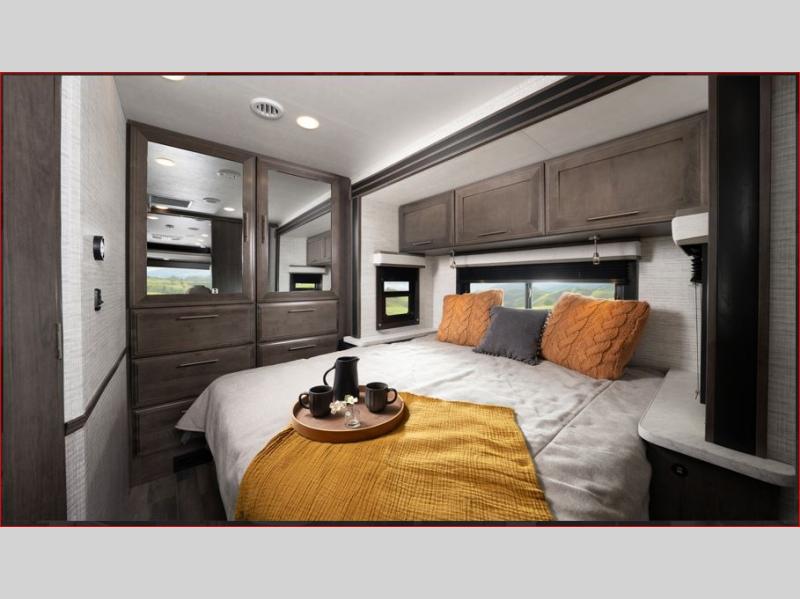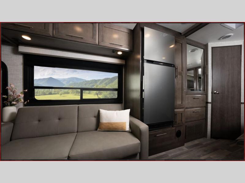 Cruise to your next luxurious camping location in any Entegra Coach Vision Class A gas motorhome! With its high-class features, the Vision makes it quite easy to create memorable and lavish getaways. The exterior comes equipped with an electric patio awning with LED lights, an outside shower, an exterior utility center, and slide out awnings. There are also lockable pass-through storage compartments. The generator will provide extra convenience while the water filtration system keeps your water pure and tasting great.